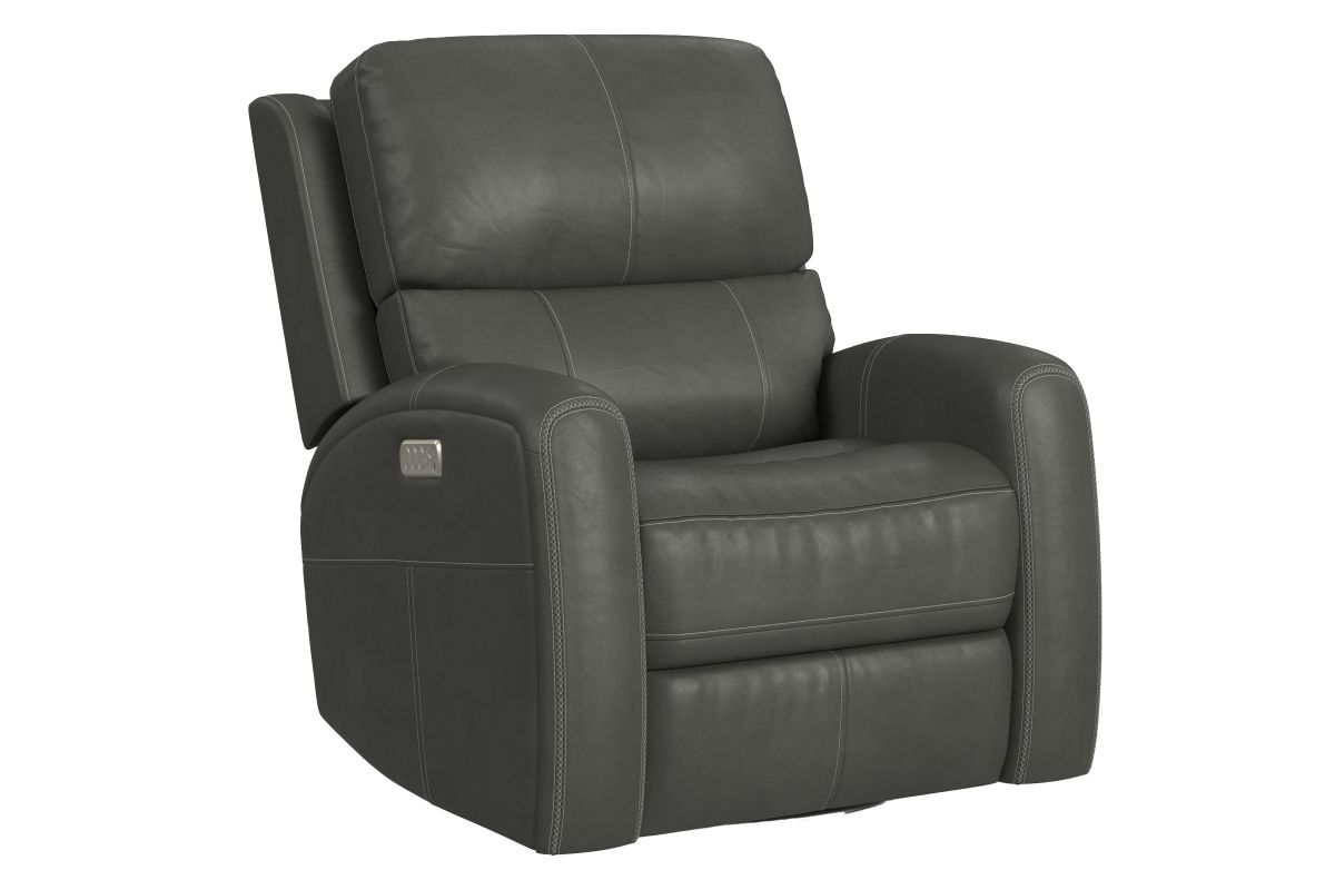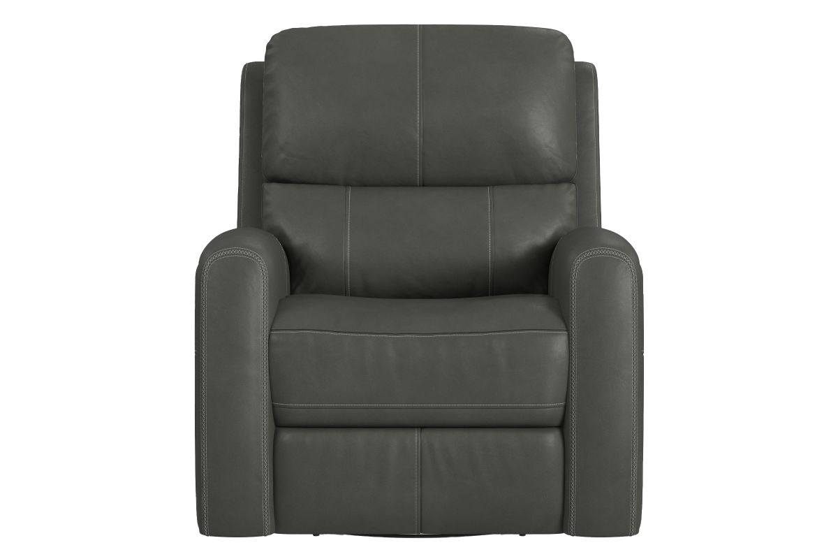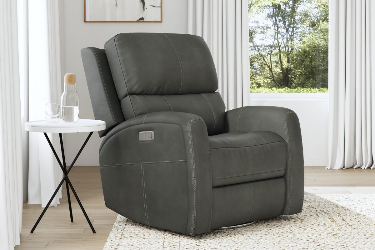 Enjoy the ultimate in ergonomics with the Linton triple power swivel gliding recliner with power headrest, lumbar, heat, and massage. The plush, divided back cushion supports the back while the padded track arms showcase an eye-catching cross-stitch detail. Independently adjust the recline, headrest and lumbar for a customized sit. This recliner effortlessly swivels and glides for versatile comfort, while adjustable heat and air massage features in the seat and backrest provide elevated wellness. And with Flexsteel’s Blue Steel Spring™ at the heart of the seat, the Linton swivel glider recliner is designed to last.