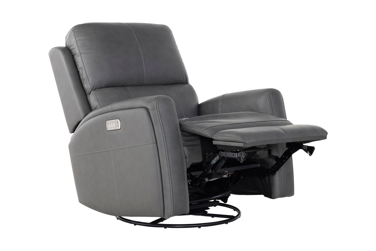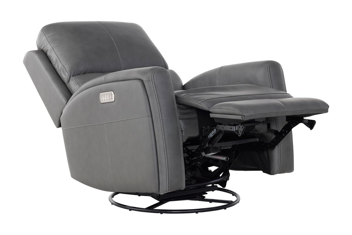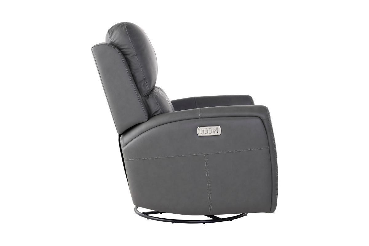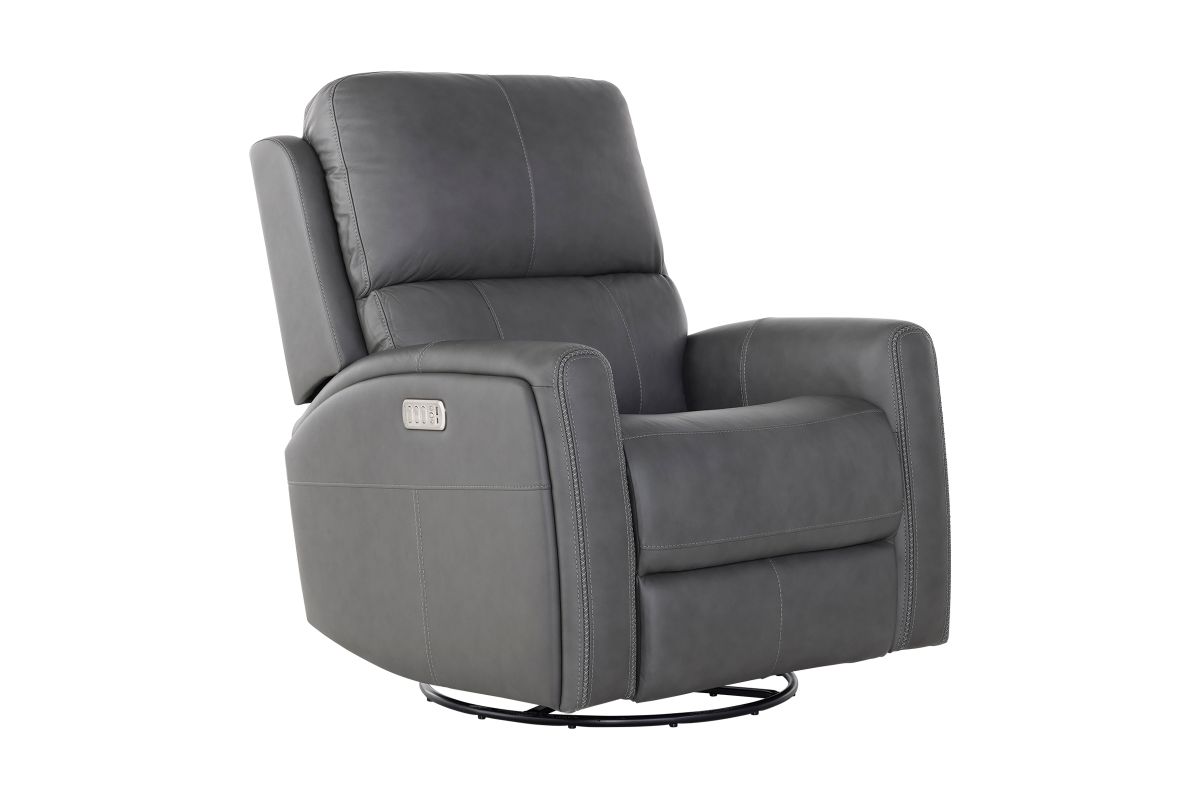 Enjoy the ultimate in ergonomics with the Linton triple power swivel gliding recliner with power headrest, lumbar, heat, and massage. The plush, divided back cushion supports the back while the padded track arms showcase an eye-catching cross-stitch detail. Independently adjust the recline, headrest and lumbar for a customized sit. This recliner effortlessly swivels and glides for versatile comfort, while adjustable heat and air massage features in the seat and backrest provide elevated wellness. And with Flexsteel’s Blue Steel Spring™ at the heart of the seat, the Linton swivel glider recliner is designed to last.
