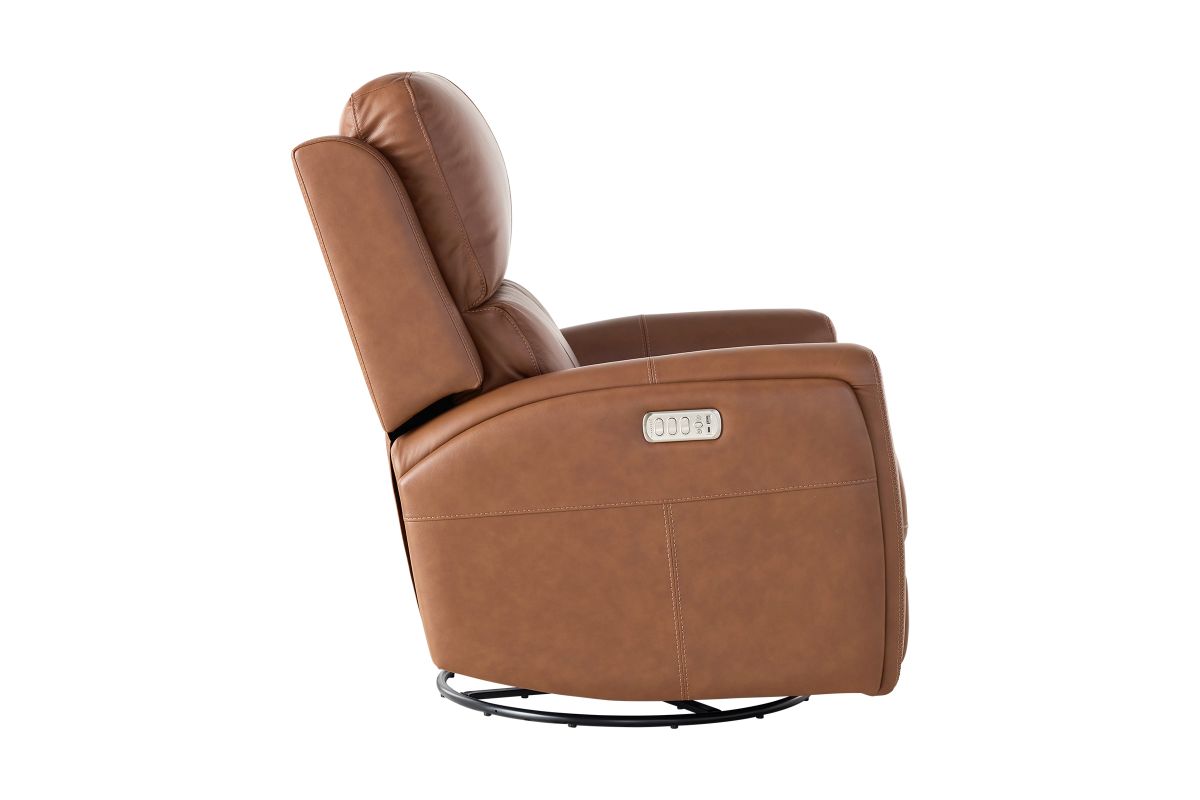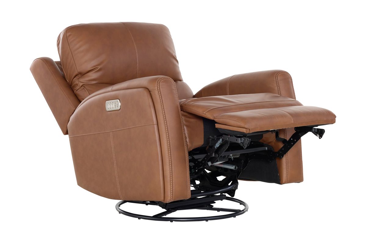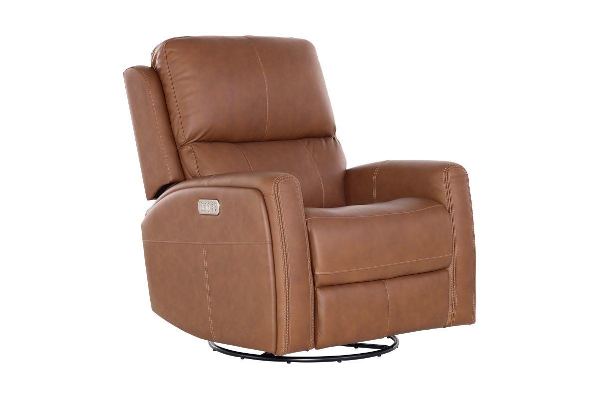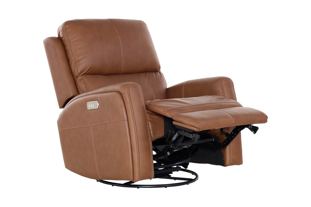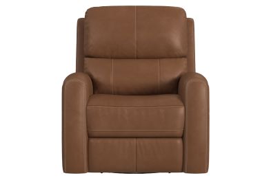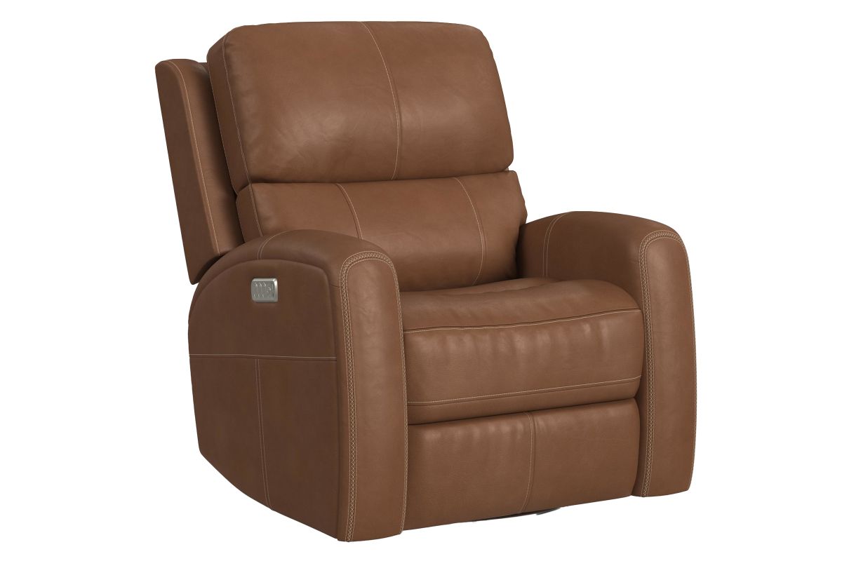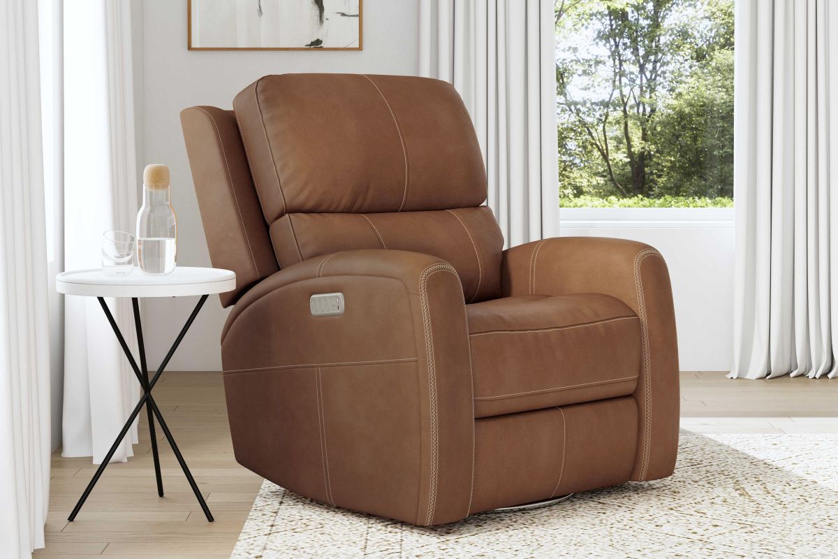 Enjoy the ultimate in ergonomics with the Linton triple power swivel gliding recliner with power headrest, lumbar, heat, and massage. The plush, divided back cushion supports the back while the padded track arms showcase an eye-catching cross-stitch detail. Independently adjust the recline, headrest and lumbar for a customized sit. This recliner effortlessly swivels and glides for versatile comfort, while adjustable heat and air massage features in the seat and backrest provide elevated wellness. And with Flexsteel’s Blue Steel Spring™ at the heart of the seat, the Linton swivel glider recliner is designed to last.