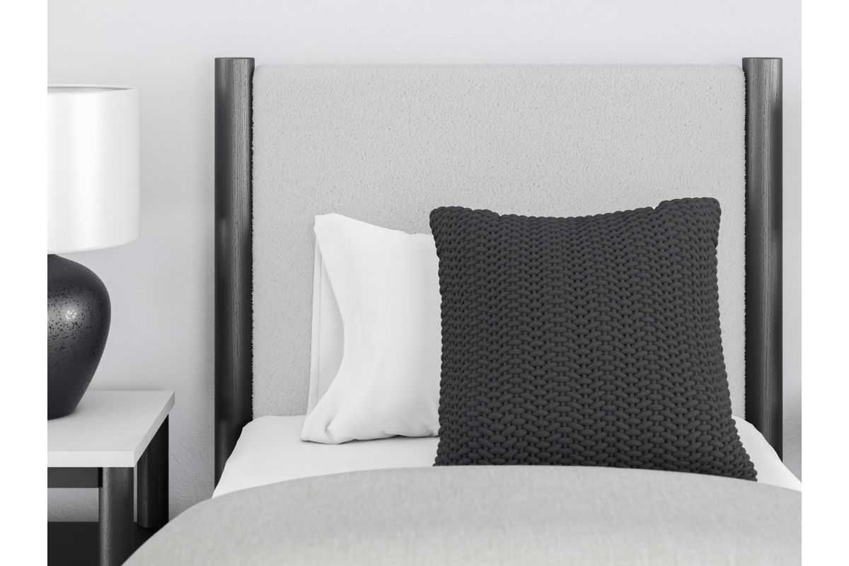 This twin upholstered panel bed reflects your sophisticated approach to boho style. Crafted with both form and function in mind, its black boucle fabric brings trend-right beauty to bedtime. The versatile design suits all-neutral spaces or blends with your favorite pops of color. It's inviting, yet posh. Luxe, yet laid-back. With this bed, your free-spirited vibe meets modern design. Assembly required