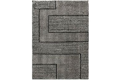 - Machine woven, geometric design in black and ivory