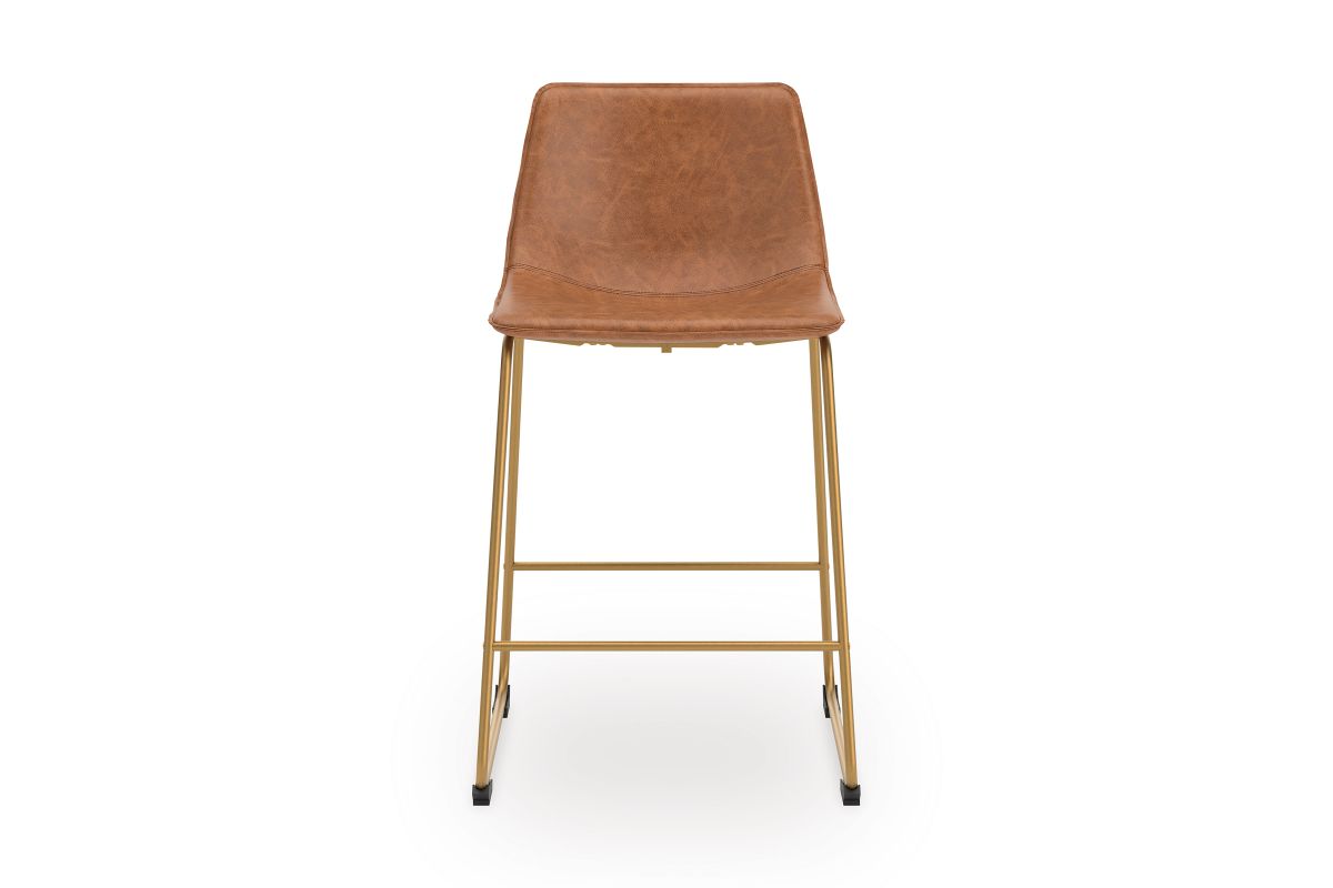 Dine in casual contemporary fashion with this counter height bar stool. A retro-inspired bucket design gives it a mid-century vibe. Sleek faux leather and a luxe goldtone frame bring the look right into the present. And with a contoured seat for your comfort, it dishes out style and convenience all in one. Assembly required.