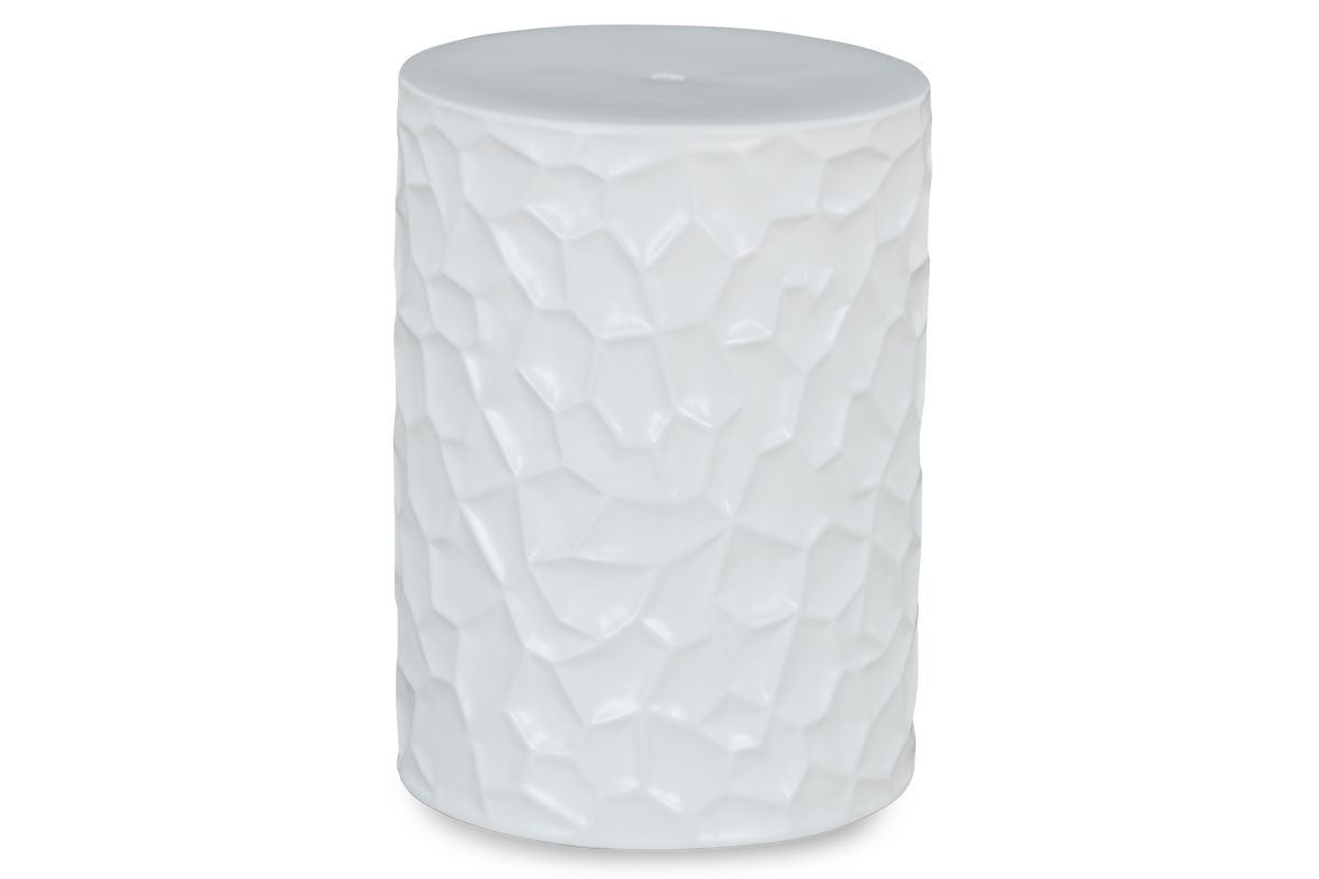 Inspired by modernist sculpture, this contemporary accent stool is an homage to the power of art. Ideal for any outdoor or indoor living space, it features bold irregular patterned sides and a minimalist matte white finish, creating an instant aura of forward-thinking flair. No assembly required.