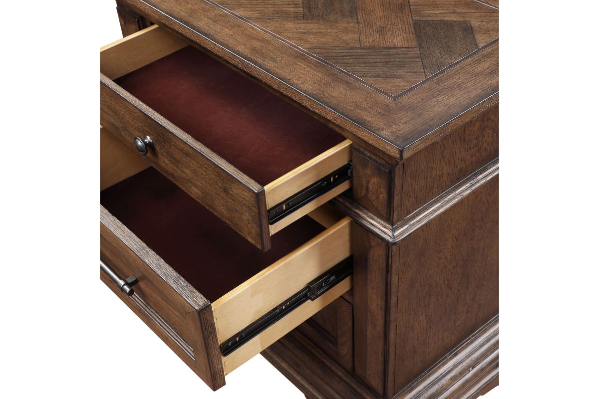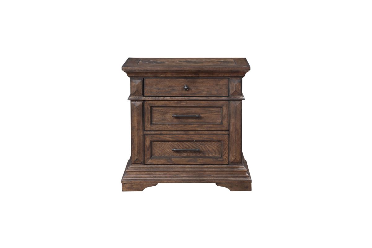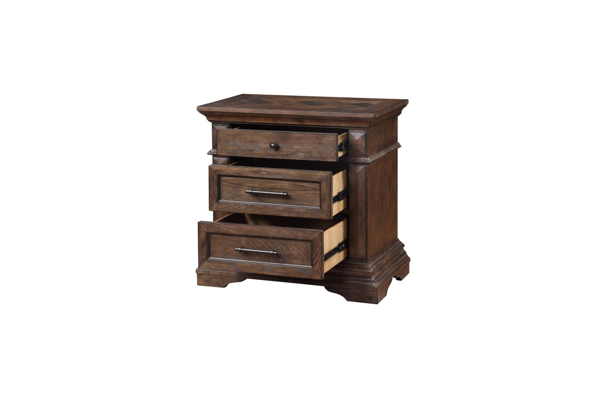 - Style that makes a Statement: This beautiful wood nightstand integrates substantial crown moldings, carved bracket feet and convex pilaster moldings, all highlighting the signature herringbone wood inlays that are the hallmark of the Mar Vista Collection.