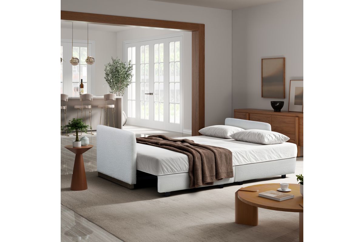 Elevate your living space with the Serta Convertible Sofa, where style meets functionality. Designed with smart space-saving in mind, it effortlessly transforms from a chic sofa to a comfortable bed with pull-out seats on smooth glides—perfect for hosting guests in cozy spaces. Built to last, this piece showcases Serta’s quality craftsmanship, blending timeless design with durability. Wood legs add stability and charm, while high-density foam padding ensures premium comfort for ultimate relaxation. With its effortless assembly, this convertible sofa lets you enjoy comfort and style in minutes, making it the perfect centerpiece for any home.