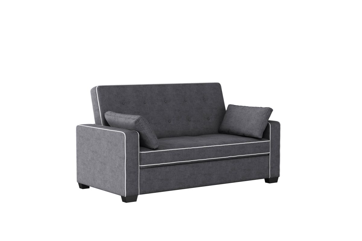 The Atherton convertible sofa brings together clean design, smart engineering and craftsmanship in this gorgeous sofa. Built strong, this multi-function sofa transforms into an optional lounger and full size bed making it perfect for the den or guest room. Featuring multi-functional positions, the Atherton showcases our patented Finger Guard Protection with click & lock technology to avoid injury. This versatile sofa is tufted with high-density foam cushions and Dream Coils wrapped in self stitching upholstery fabric in Charcoal -including two throw pillows- providing a luxurious feel and easy cleaning maintenance. This durable sofa is constructed with kiln dried solid hardwood frame, providing superior structure, stability and support. Treat your guests to the Atherton’s comfortable bed and they will feel completely rested and energized the next morning. Whether decorating the new guest room or your family den, bring the Atherton to your home for extra sleeping space and make any weekend a holiday.