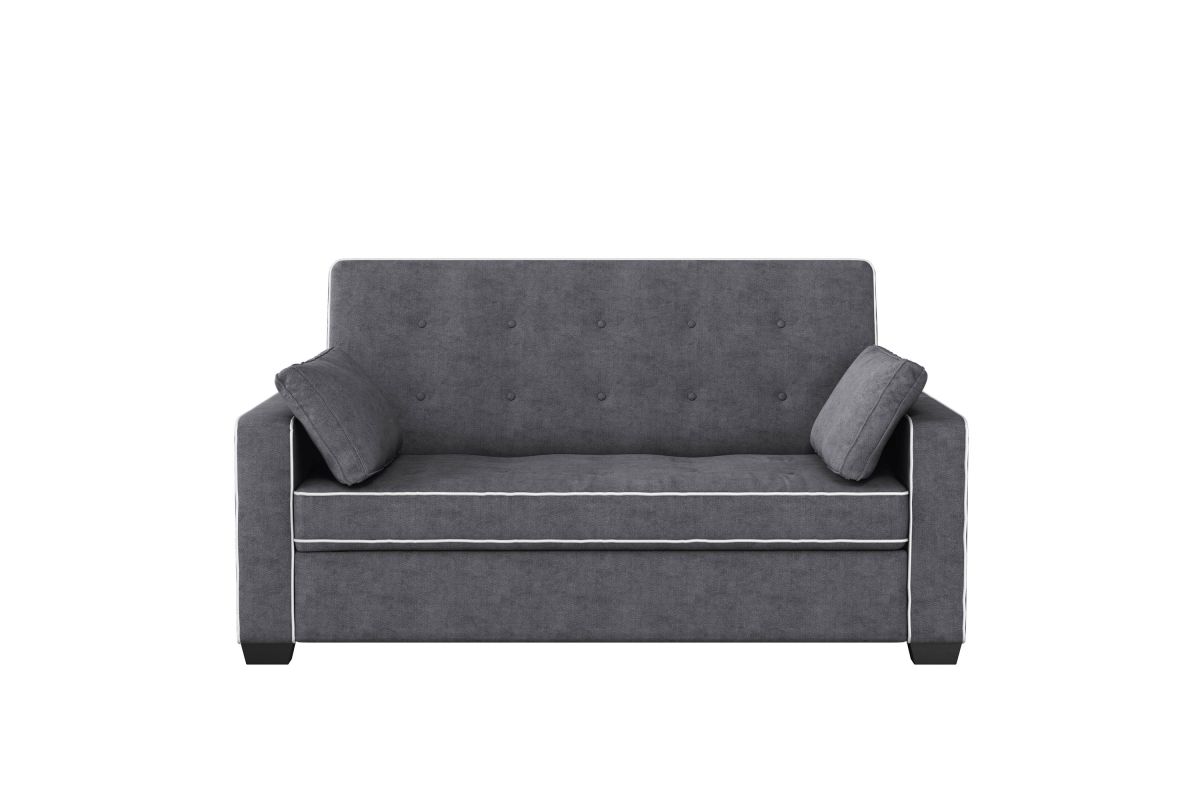 The Atherton convertible sofa brings together clean design, smart engineering and craftsmanship in this gorgeous sofa. Built strong, this multi-function sofa transforms into an optional lounger and full size bed making it perfect for the den or guest room. Featuring multi-functional positions, the Atherton showcases our patented Finger Guard Protection with click & lock technology to avoid injury. This versatile sofa is tufted with high-density foam cushions and Dream Coils wrapped in self stitching upholstery fabric in Charcoal -including two throw pillows- providing a luxurious feel and easy cleaning maintenance. This durable sofa is constructed with kiln dried solid hardwood frame, providing superior structure, stability and support. Treat your guests to the Atherton’s comfortable bed and they will feel completely rested and energized the next morning. Whether decorating the new guest room or your family den, bring the Atherton to your home for extra sleeping space and make any weekend a holiday.