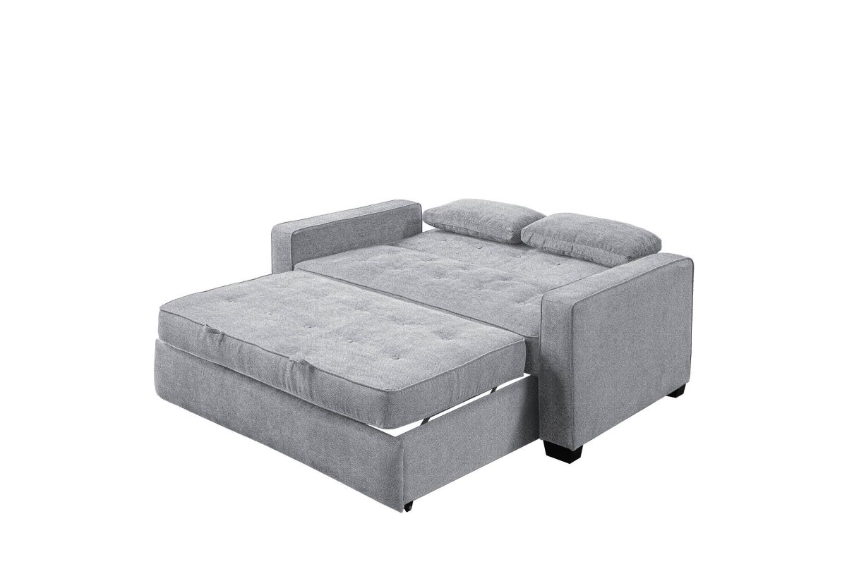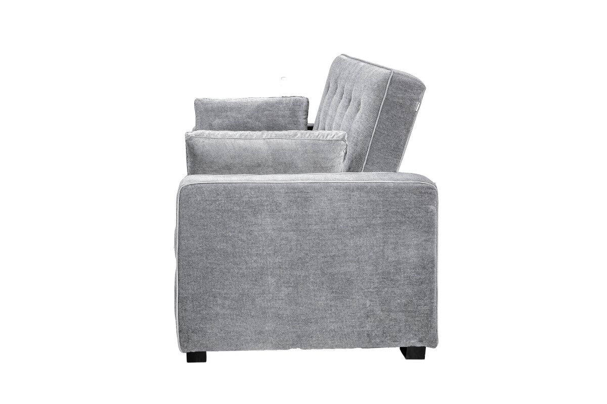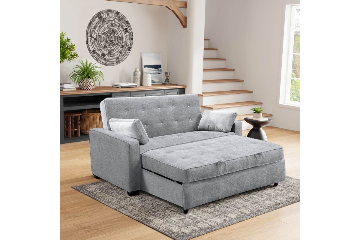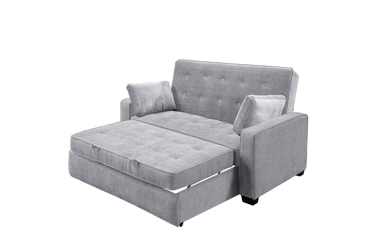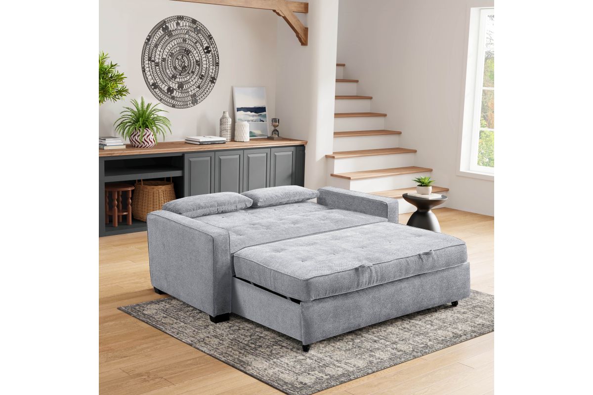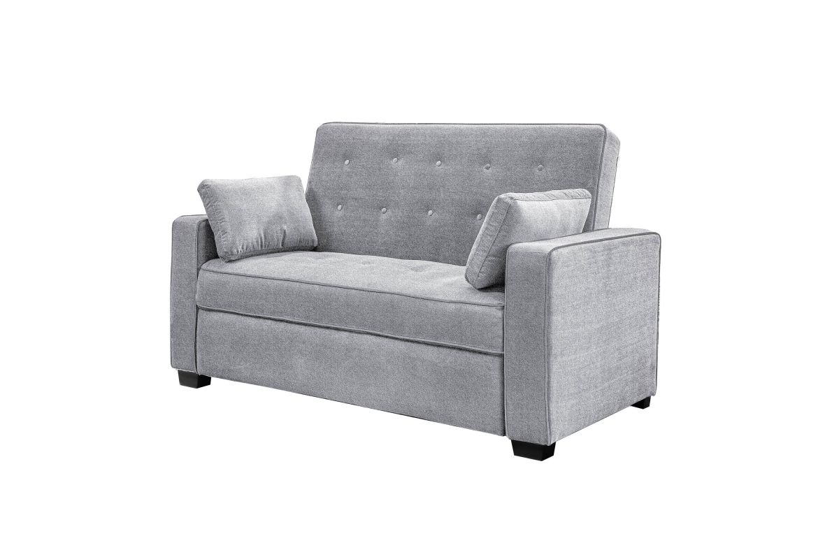 The Atherton convertible sofa brings together clean design, smart engineering and craftsmanship in this gorgeous sofa. Built strong, this multi-function sofa transforms into an optional lounger and Queen size bed making it perfect for the den or guest room. Featuring multi-functional positions, the Atherton showcases our patented Finger Guard Protection with click & lock technology to avoid injury. This versatile sofa is tufted with high-density foam cushions and Dream Coils wrapped in self stitching upholstery fabric in Charcoal -including two throw pillows- providing a luxurious feel and easy cleaning maintenance. This durable sofa is constructed with kiln dried solid hardwood frame, providing superior structure, stability and support. Treat your guests to the Atherton's comfortable bed and they will feel completely rested and energized the next morning. Whether decorating the new guest room or your family den, bring the Atherton to your home for extra sleeping space and make any weekend a holiday.