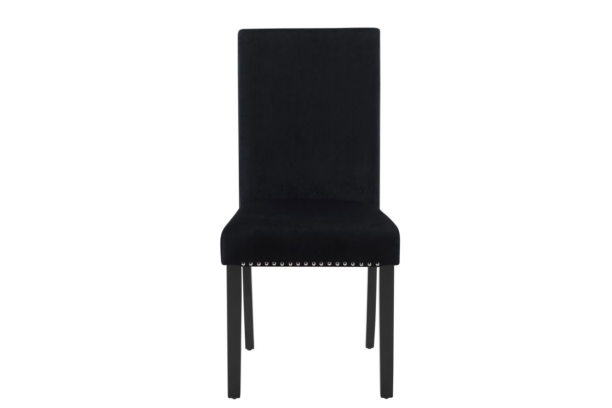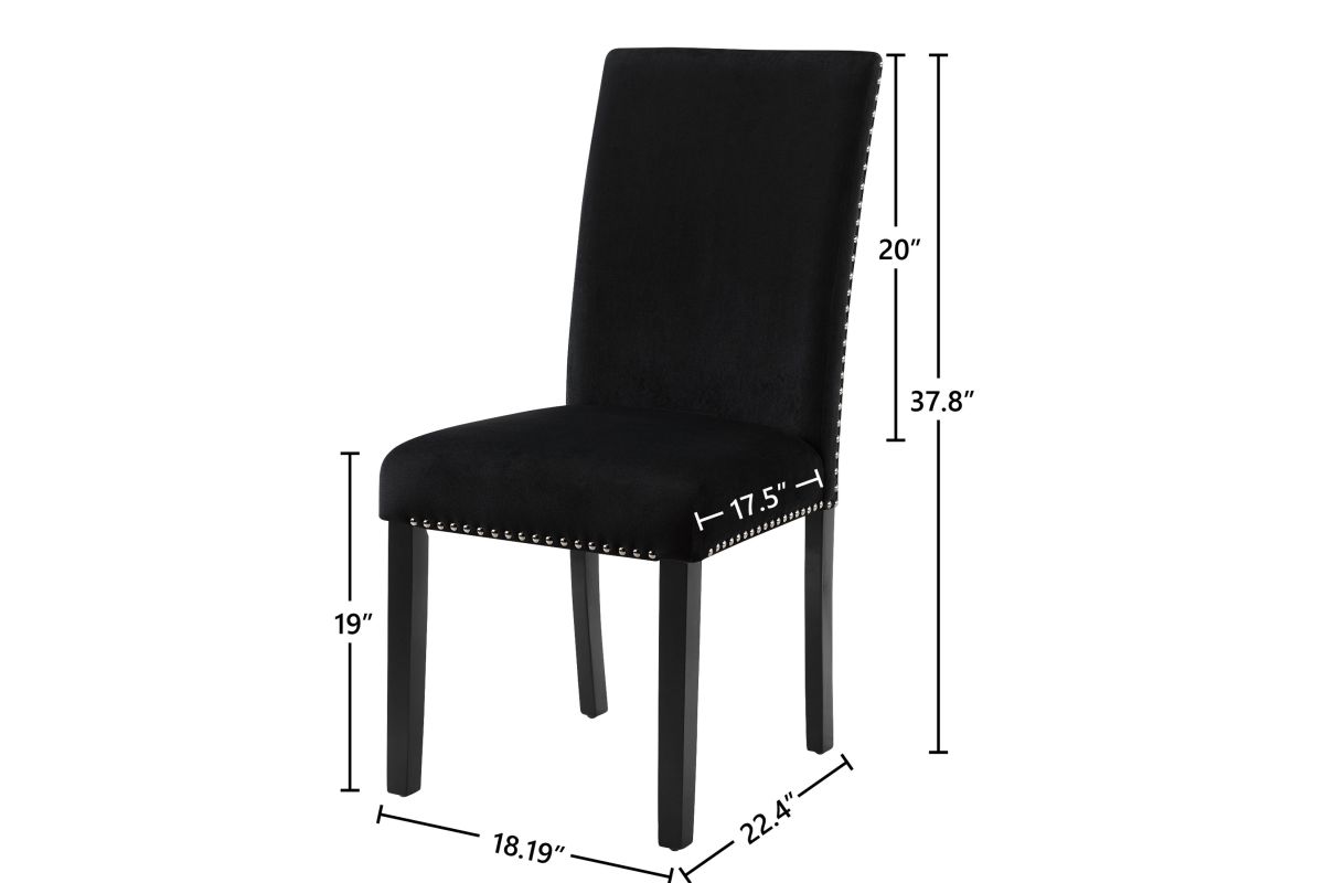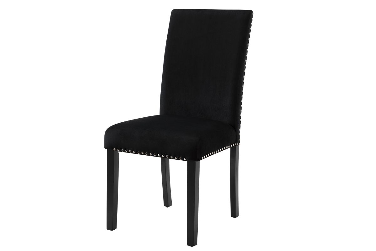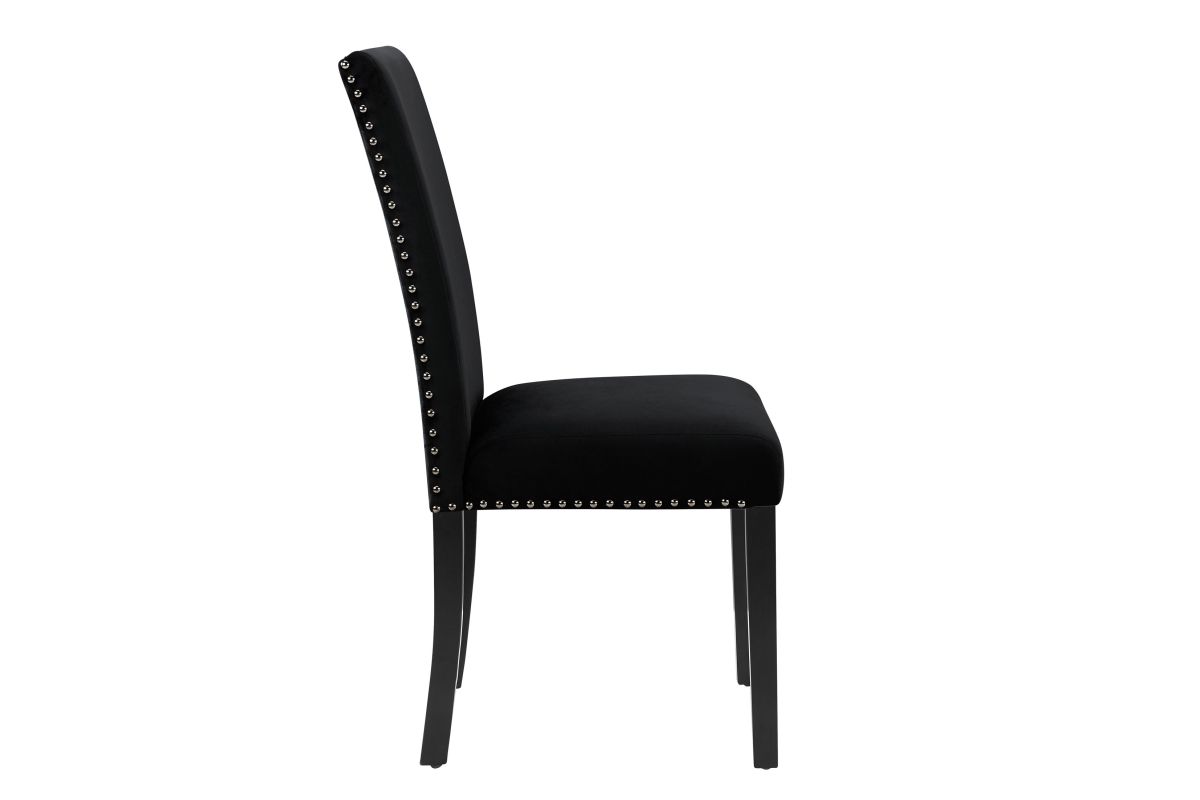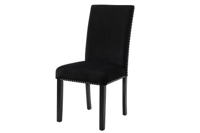Introducing the New Classic Furniture Celeste Dining Chair – a set of two chairs that seamlessly blend comfort with contemporary elegance. Crafted with solid Rubberwood legs, these chairs boast quality construction, ensuring a strong and stable seating solution for your dining space. The 100% polyester black velvet upholstery covers sumptuous memory foam cushions, offering both softness and durability for an easy-care, luxurious seat. The espresso legs, coupled with glimmering silver nailhead trim, add a touch of modern glamour to the plush velvet seating. Setting up these chairs is a breeze with the included easy-to-follow assembly instructions. Elevate your dining experience with the Celeste Dining Chair – where quality, comfort, and style converge effortlessly. Assembly required.