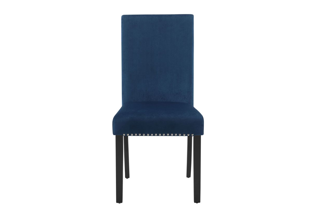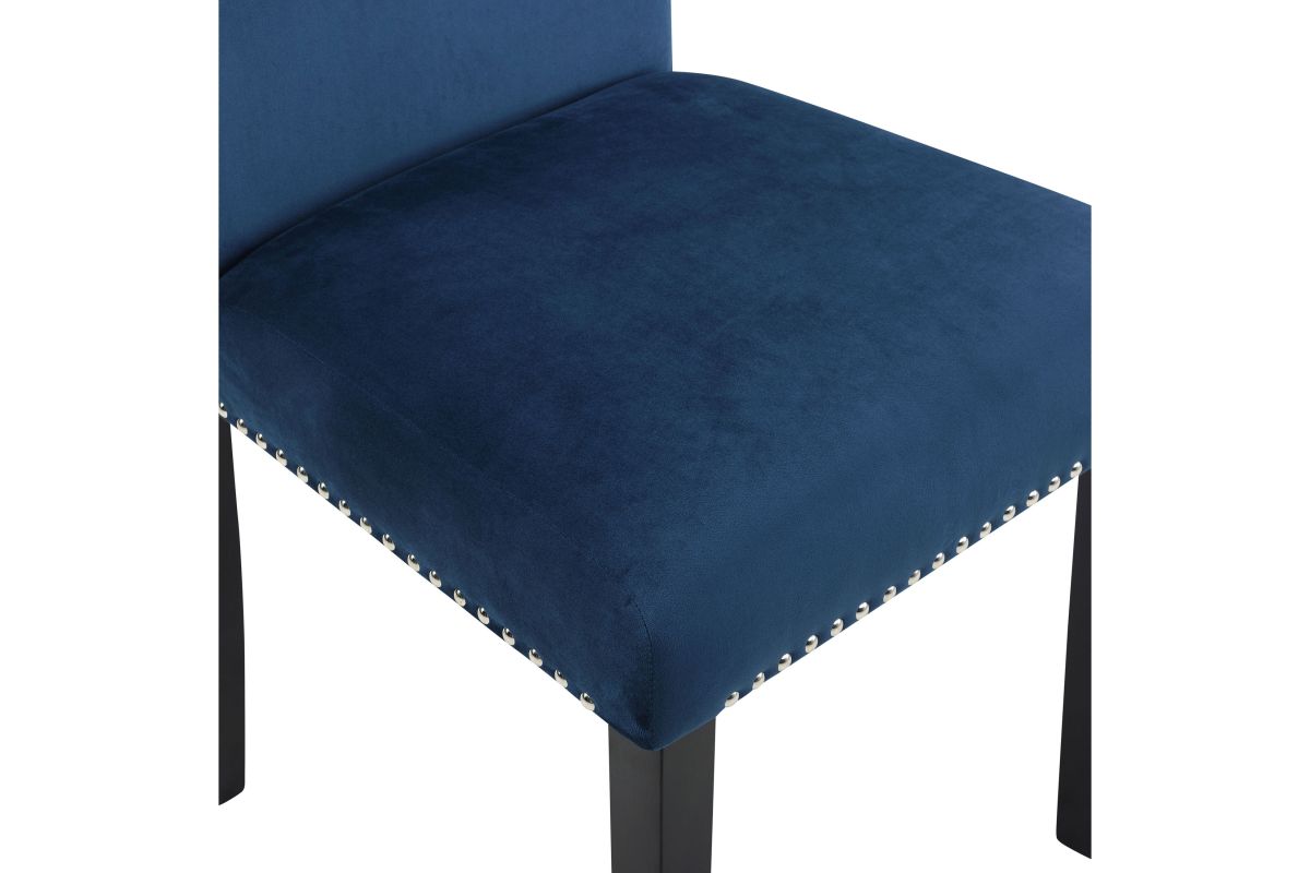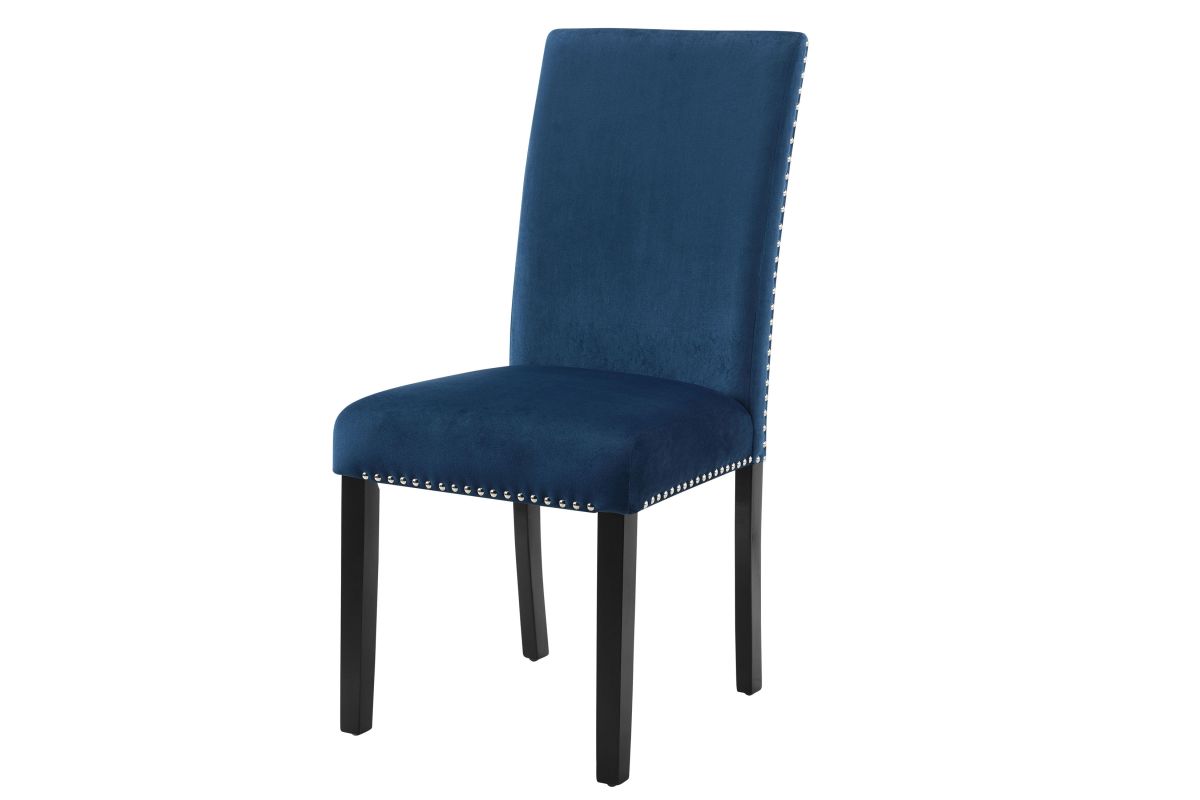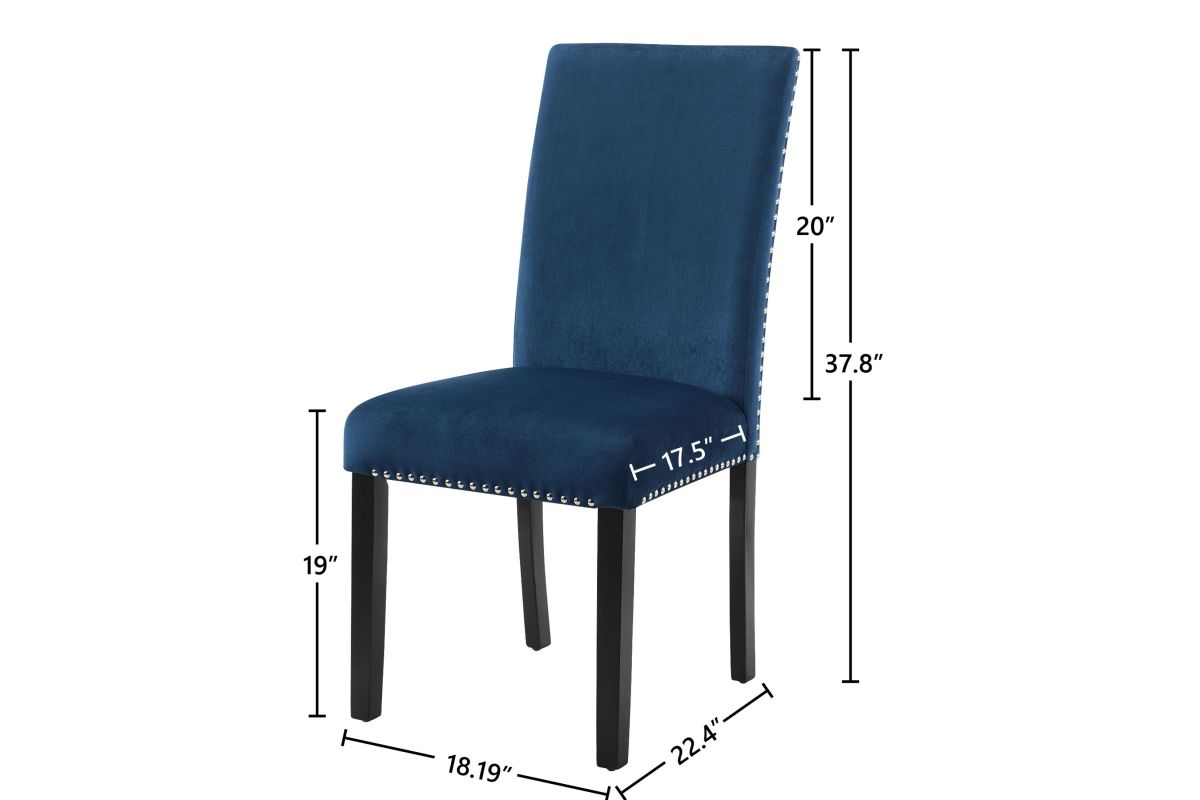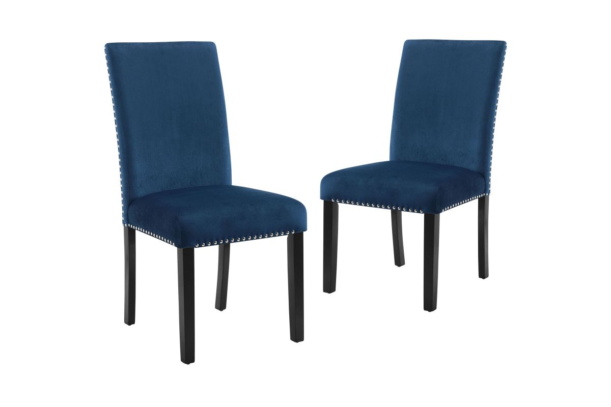 Introducing the New Classic Furniture Celeste Dining Chair – a set of two chairs that seamlessly blend comfort with contemporary elegance. Crafted with solid Rubberwood legs, these chairs boast quality construction, ensuring a strong and stable seating solution for your dining space. The 100% polyester royal blue velvet upholstery covers sumptuous memory foam cushions, offering both softness and durability for an easy-care, luxurious seat. The espresso legs, coupled with glimmering silver nailhead trim, add a touch of modern glamour to the plush velvet seating. Setting up these chairs is a breeze with the included easy-to-follow assembly instructions. Elevate your dining experience with the Celeste Dining Chair – where quality, comfort, and style converge effortlessly. Assembly required.