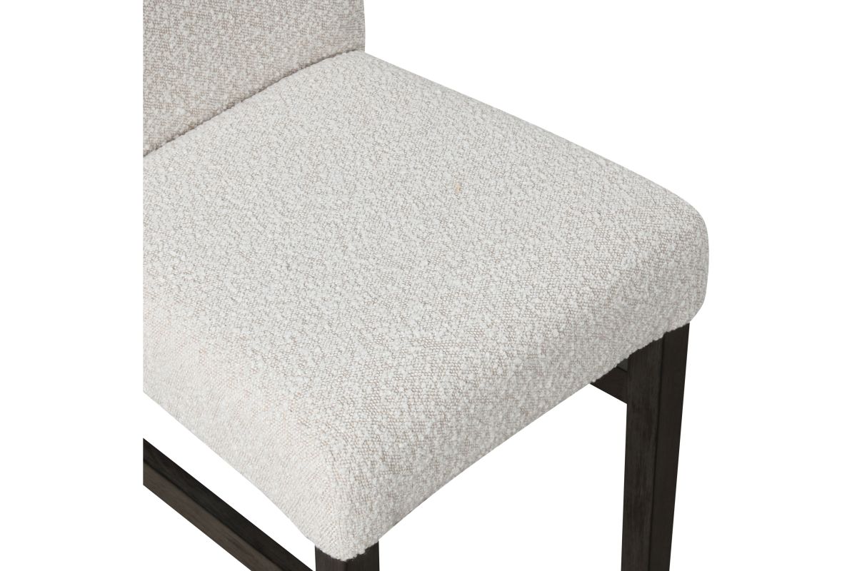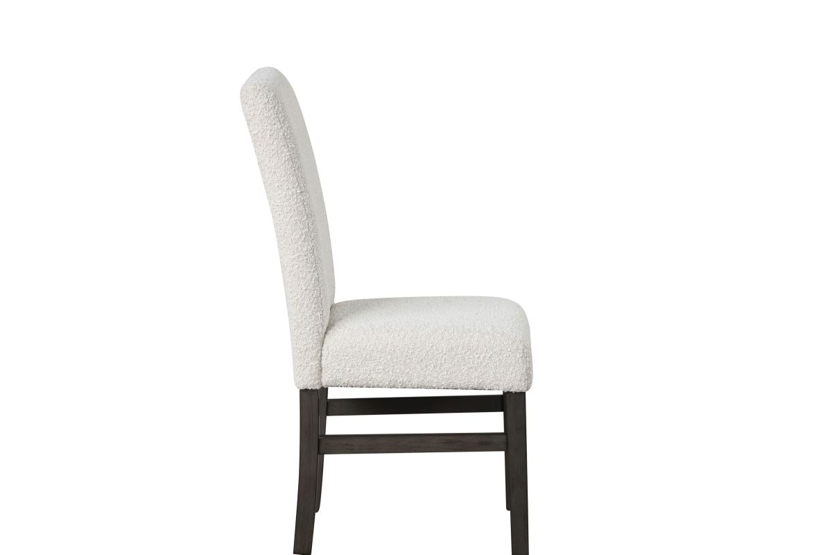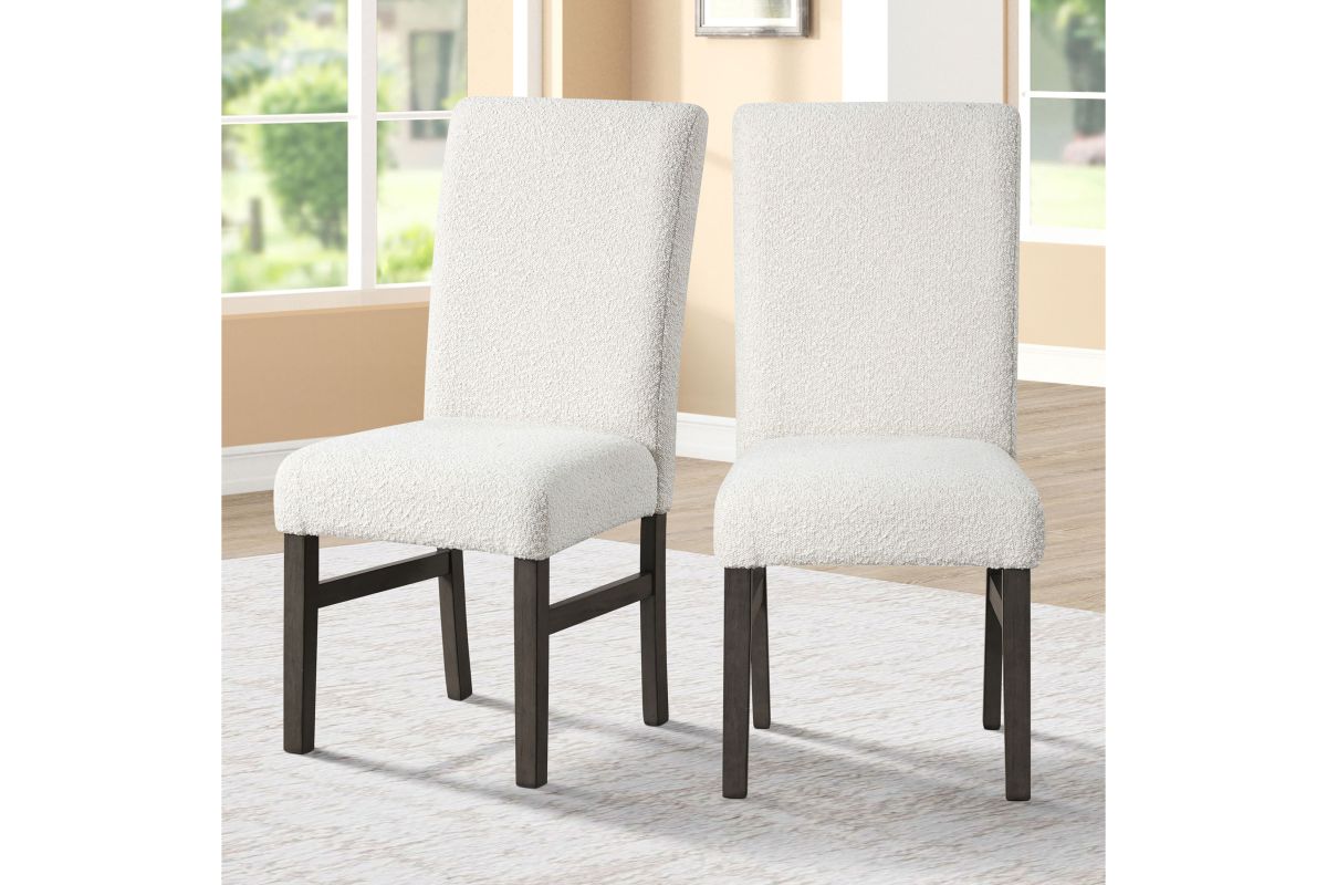 The High Line Upholstered Dining Chairs in White combine durability, comfort, and style to enhance any living space. Each set includes two dining chairs, expertly crafted from solid Acacia and Rubberwood, along with high-quality manufactured woods and Birch veneers, ensuring durability and stability. The luxurious bouclé fabric offers exceptional durability, making these chairs ideal for frequent use. The unique looped texture provides a plush, comfortable seating experience, adding both elegance and longevity to your dining area. Perfect for dining rooms, home offices, or as accent chairs in living spaces, these chairs add both functionality and aesthetic appeal. The High Line Upholstered Dining Chairs seamlessly blend into various interior designs, making them a versatile and stylish addition to any home. Assembly required.