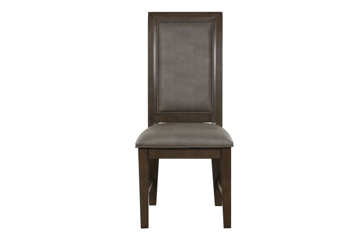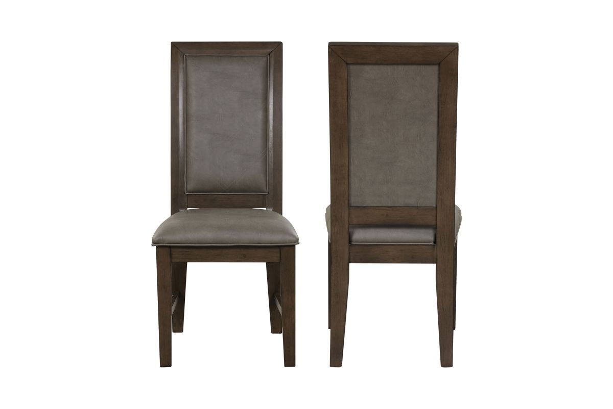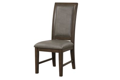 The Cityscape Dining Side Chairs, Set of 2, are designed with both durability and comfort in mind, making them a great addition to any dining room. Constructed from a blend of Rubberwood solids, manufactured woods, and real Oak veneers, these chairs offer lasting strength while showcasing the natural beauty of wood. The sleek lines and dark walnut finish give the chairs a modern, industrial-inspired aesthetic that complements a range of interior styles. Each chair features a foam-cushioned seat and back, upholstered in soft, easy-care 100% polyester fabric, combining style with everyday comfort. Perfect for both formal dinners and casual meals, these chairs bring a blend of functionality and design to your dining space. Assembly required.