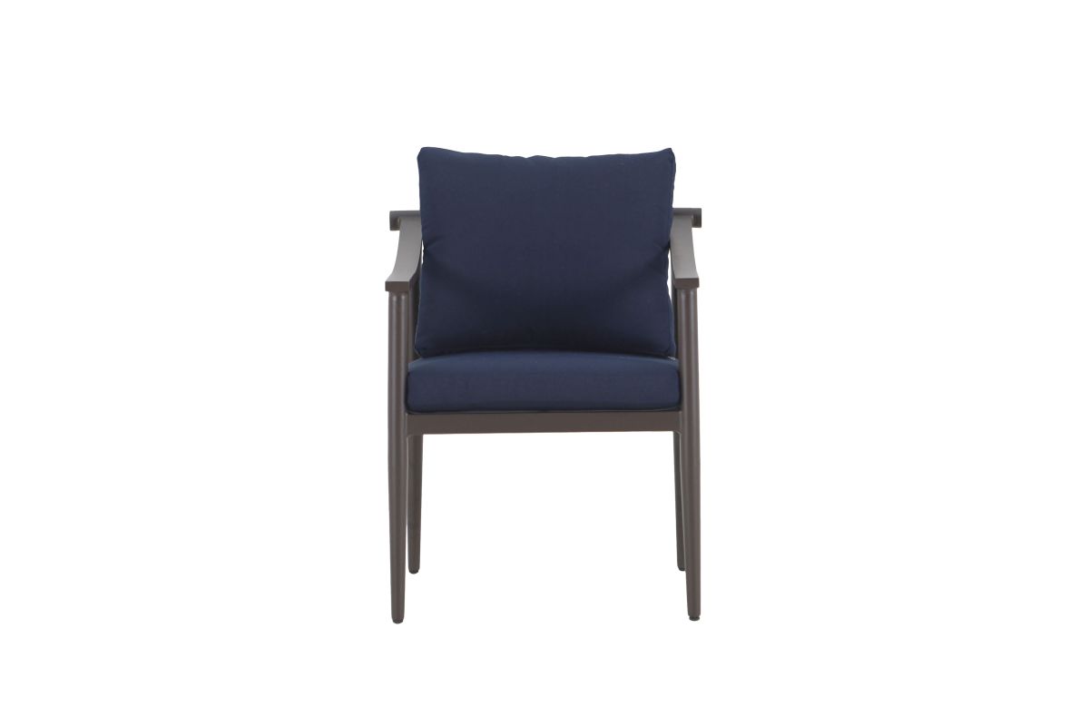- Modern Minimalism: This outdoor patio dining chair features clean lines, a sleek dark frame, and blue cushions, embodying a minimalist aesthetic. The simple yet elegant design allows it to seamlessly blend into various outdoor settings, providing a stylish and understated look that complements contemporary outdoor spaces.