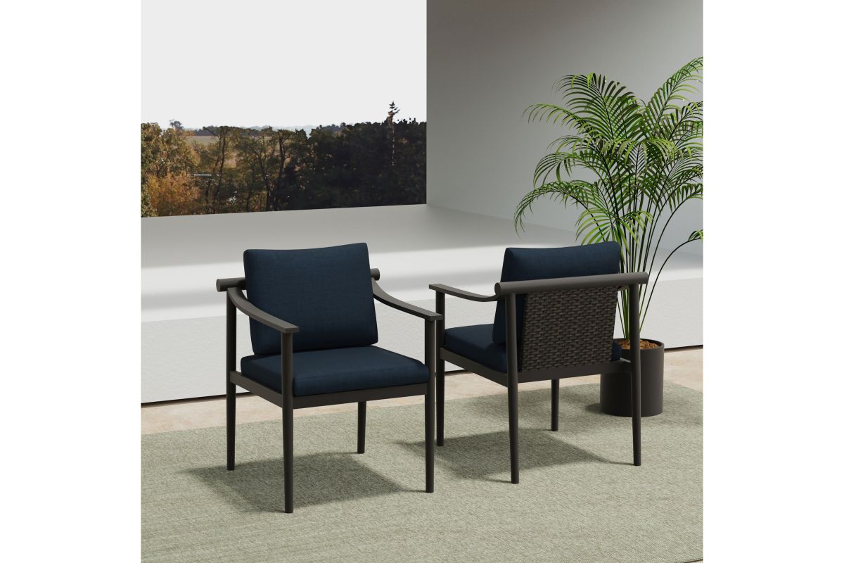 The Moana Patio Side Chairs offer a durable and stylish seating solution for your outdoor space. Built with aluminum frames and a baked-on powder coat finish, these chairs provide excellent resistance to scratches and the elements, ensuring long-lasting use. The high-density PE wicker construction delivers the classic look of wicker while being low-maintenance, water-resistant, and fade-proof. Featuring exclusive Sundura™ fabric, these chairs are designed with fade-resistant, all-weather cushions that maintain their vibrant color and resist mildew, moisture, and fading. Each chair includes 6cm thick foam seat and back cushions for superior comfort, making it perfect for relaxing outdoors. With a sleek, minimalist design, these chairs easily integrate into any outdoor decor, offering a modern yet timeless look. Ideal for outdoor dining or casual lounging, the Moana Patio Side Chairs are a smart choice for any patio or garden. No assembly required.