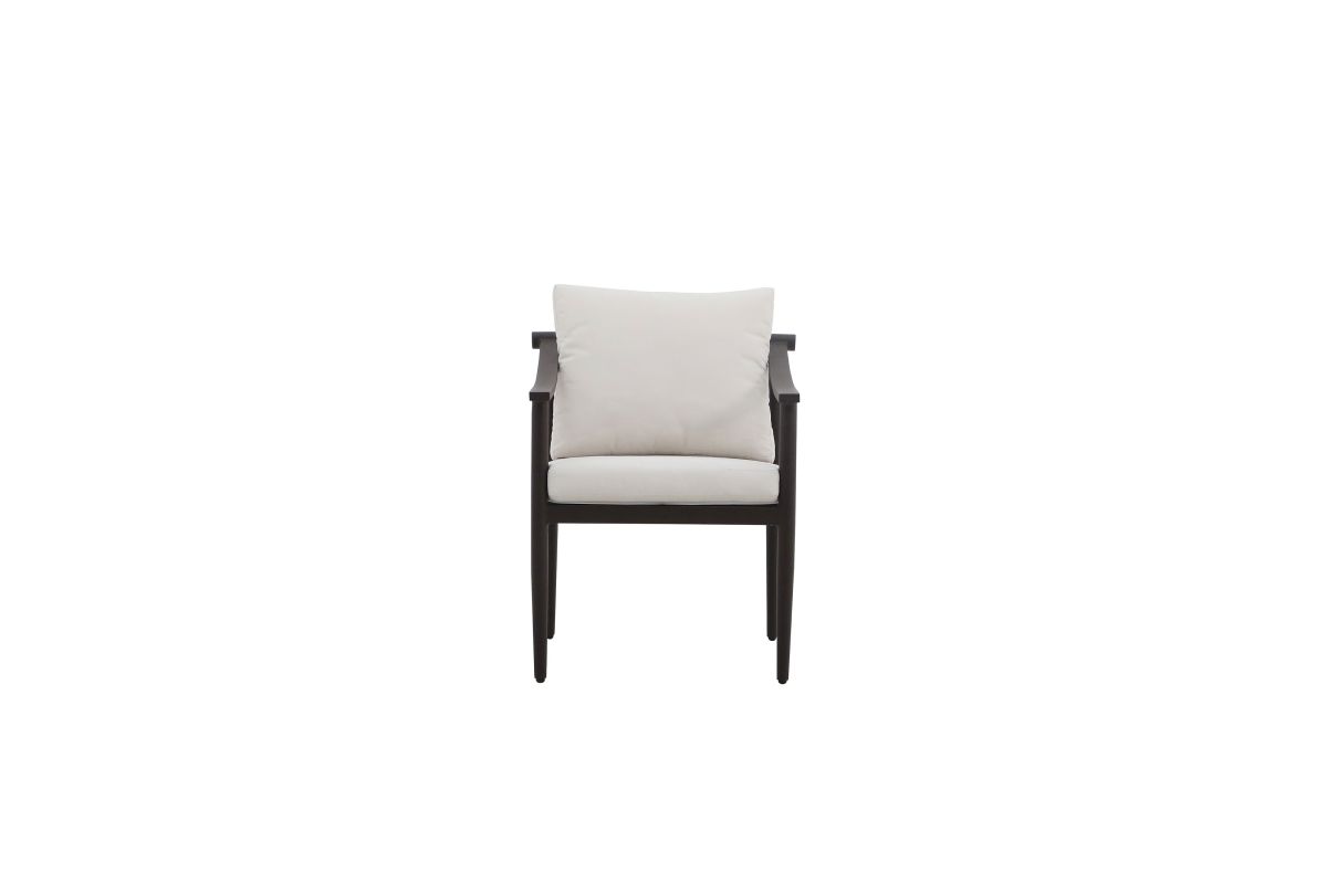 - Modern Minimalism: This outdoor patio dining chair features clean lines, a sleek dark frame, and neutral cushions, embodying a minimalist aesthetic. The simple yet elegant design allows it to seamlessly blend into various outdoor settings, providing a stylish and understated look that complements contemporary outdoor spaces.