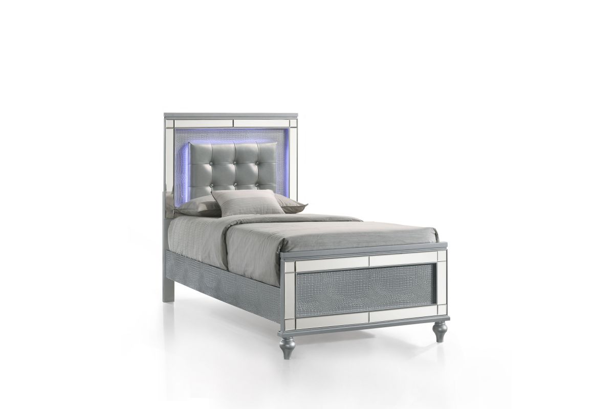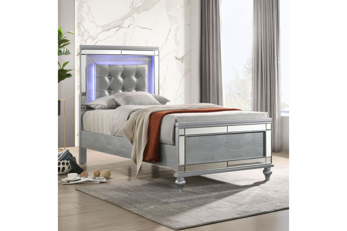 Sorry, the Valentino Twin Panel Bed - Silver is no longer available. We've left this page up for reference only. Check out the great alternatives on this page or call 248-481-2208 or Chat with a Gardner White Sales Specialist about similar products.