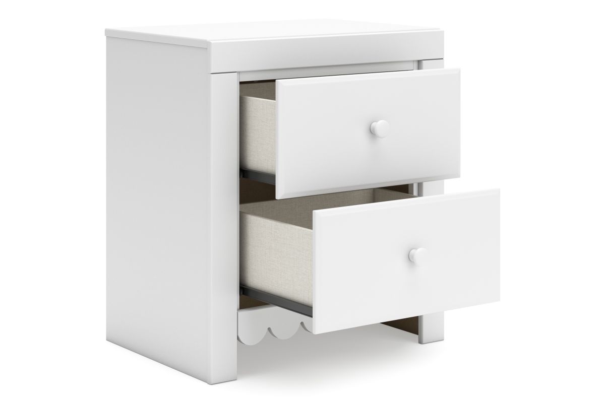 Make waking up or bedtime that much more magical with this nightstand. Charmingly cute with its scalloped detailing, it appeals to both her sense of playful whimsy and your love for modern design. The nightstand's included USB charging keeps devices or nightlights powered up. And its crisp white finish gives you the versatility to pair it with existing decor.