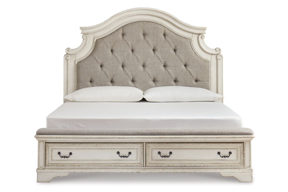 Sorry, the Realyn Queen Upholstered Storage Bed is no longer available. We've left this page up for reference only. Check out the great alternatives on this page or call 248-481-2208 or Chat with a Gardner White Sales Specialist about similar products.