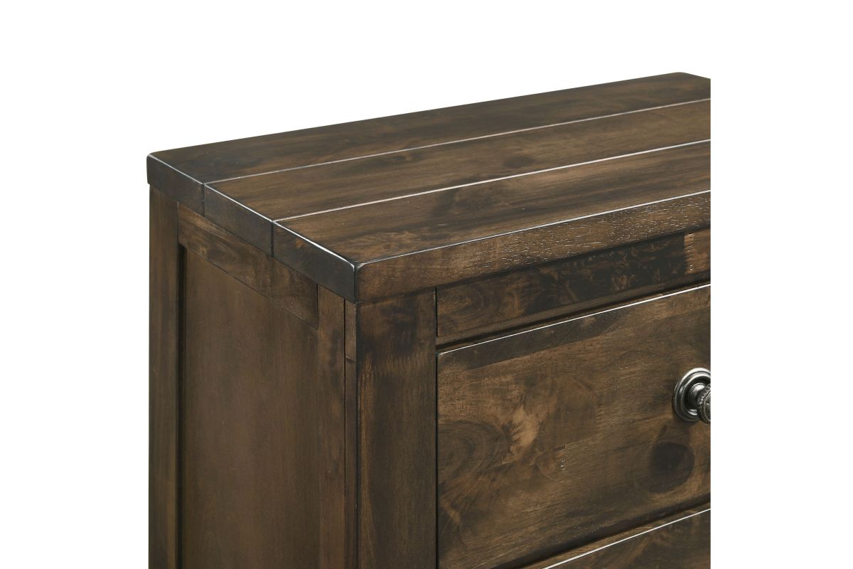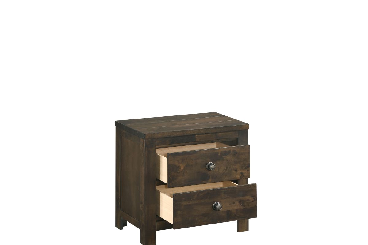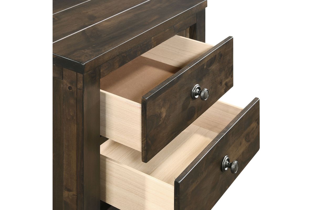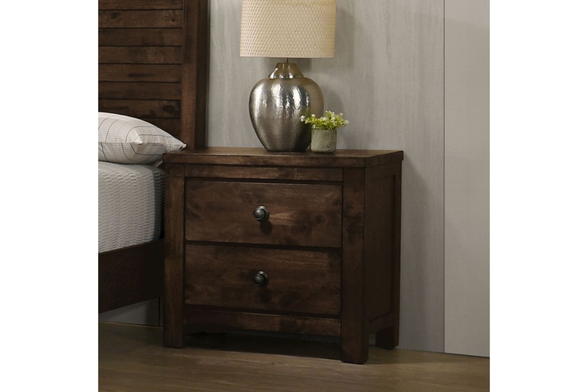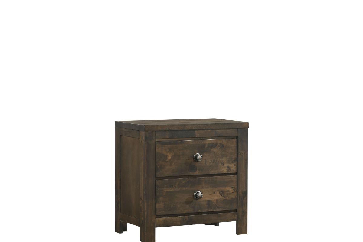 The Blue Ridge 2 Drawer Nightstand from New Classic Furniture is a testament to sustainable elegance. Crafted from reclaimed solid wood, sourced responsibly from various origins, this nightstand showcases an eco-friendly ethos. The naturally timeworn appearance, marked by distinctive characteristics like nail and bolt holes, bug holes, water and mineral staining, checking, and open knots, ensures each piece is one-of-a-kind. The solid strength of reclaimed wood, seasoned through years of service, is further fortified with a finger joining technique, allowing for the creation of enduring surfaces. The multi-step finish, featuring rustic brown with gray undertones and charcoal glazing, adds to the charm of the heavily distressed design. With effortless drawer operation, clean and carefree storage including a felt-lined top drawer, and time-tested quality utilizing four-corner English dovetail joinery, this nightstand exemplifies both practicality and durability. Compliant with safety standards and backed by a 1-year limited warranty, the Blue Ridge Nightstand offers an eco-conscious and statement making addition to your bedroom. Assembly required.