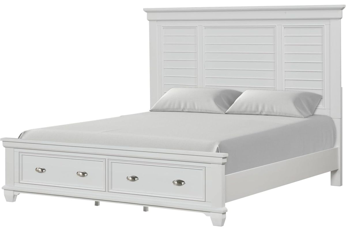 Maximize your bedroom storage with the Jamestown California King Storage Bed Rails in a clean white finish. Designed specifically for California King beds, these rails not only provide sturdy mattress support but also accommodate under-bed storage solutions, helping you keep your space organized without sacrificing style. Crafted from durable wood and finished in classic white, they perfectly complement the timeless design of the Jamestown collection. Assembly required. What's Included: (2) Side Rails for Storage Bed