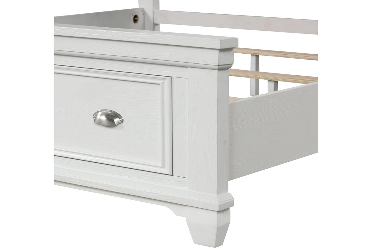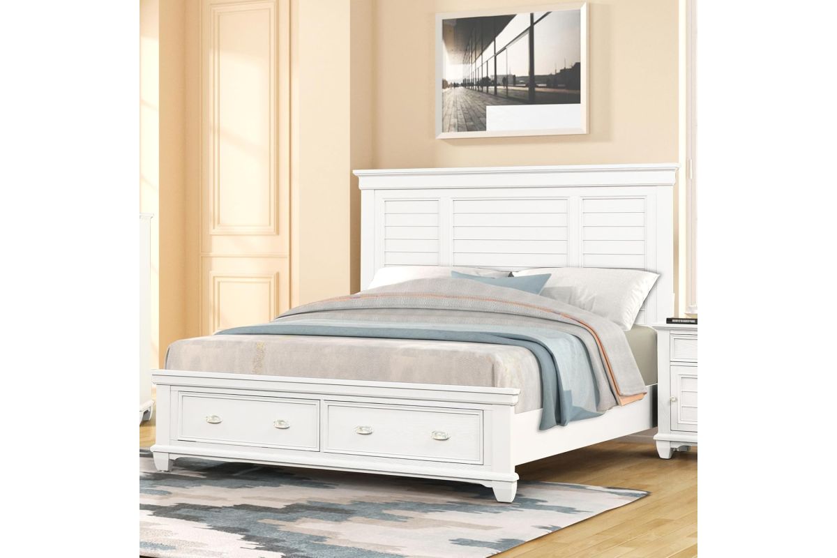 • Feature-Rich Design: This bed combines elegance with functionality, featuring a beautifully crafted headboard with classic panel detailing and integrated footboard storage drawers. The clean white finish adds a fresh, airy feel, while the additional storage provides practical space-saving solutions for your bedroom.