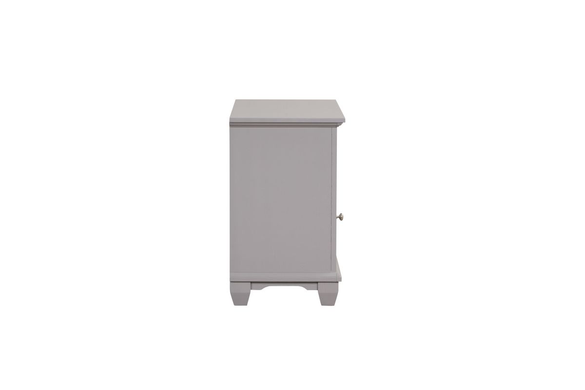 The Jamestown Wood Nightstand in Gray is a stylish and functional addition to your bedroom, offering the perfect blend of modern transitional design and practical storage solutions. This nightstand, expertly crafted from solid Acacia, premium manufactured woods, and authentic Oak veneers, ensures long-lasting durability while preserving the natural elegance of real wood. The soft, brushed gray finish exudes sophistication and versatility, effortlessly complementing a wide range of color palettes. Thoughtfully designed with clean lines and elegant panel detailing, this bedside table blends practicality with sophisticated style, enhancing the room's overall ambiance. The drawer glides smoothly on robust full-extension glides, showcasing meticulous dovetail joinery that highlights superior craftsmanship and ensures enduring quality. Inside, the finished drawer interiors prevent snags, while a large storage space is concealed behind the paneled door, providing ample room to keep your bedroom tidy and clutter-free. Assembly required.