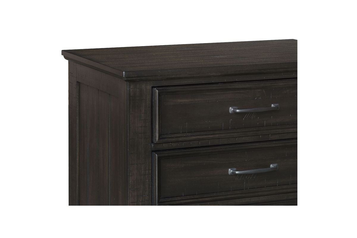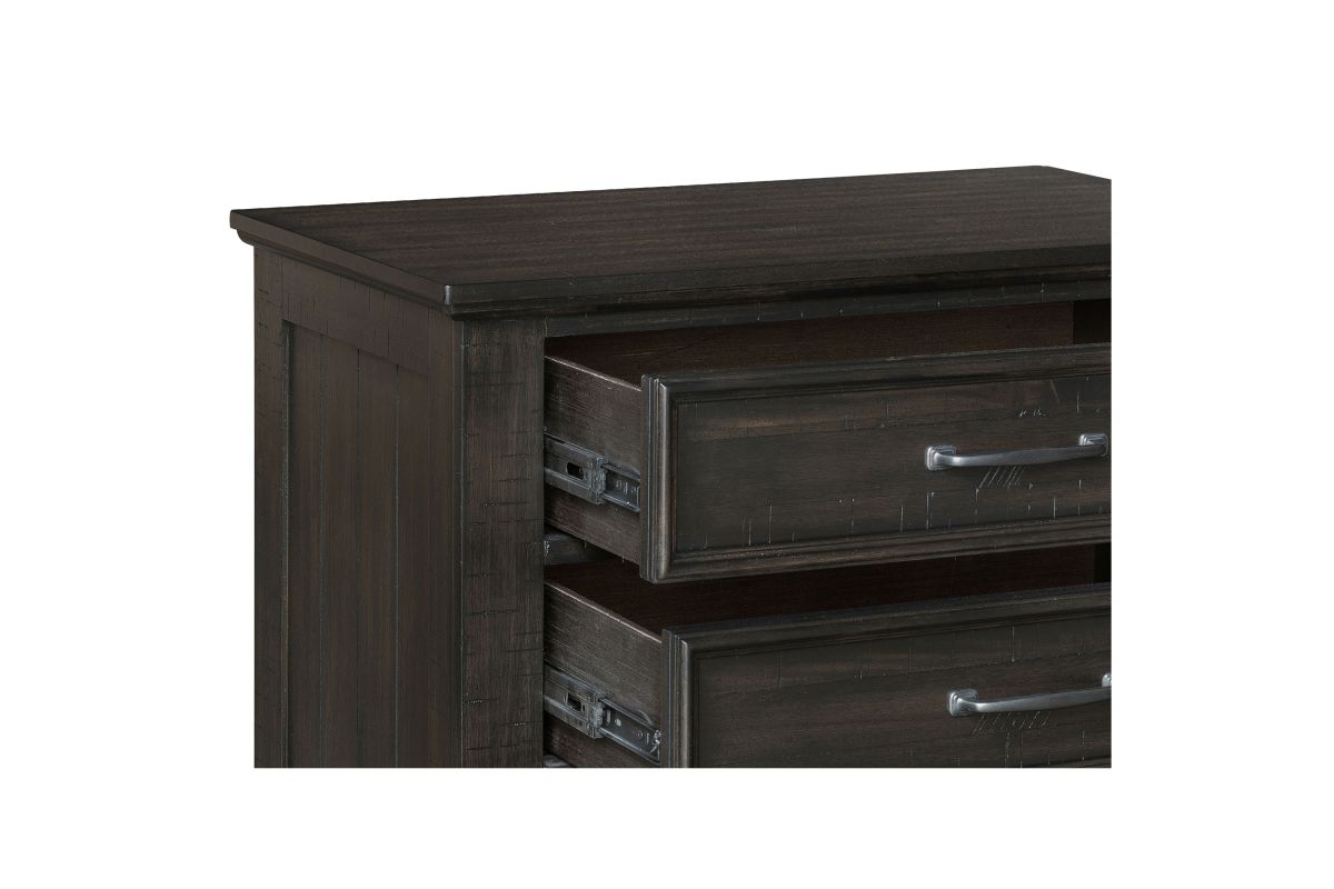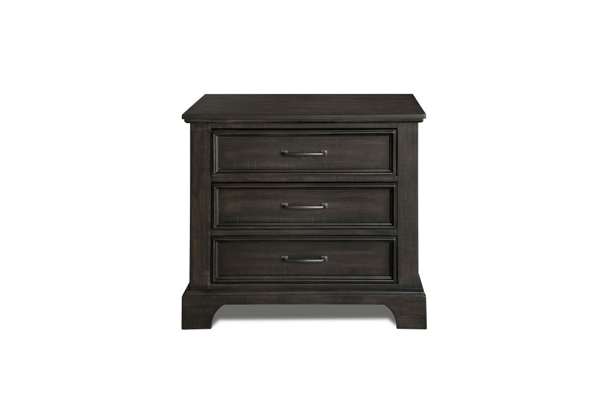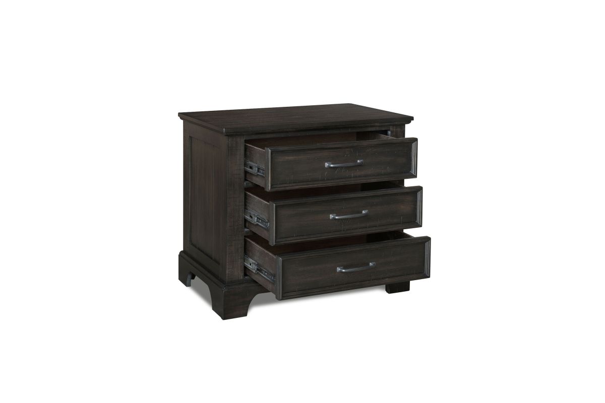 The Stafford County Wood 3 Drawer Nightstand in walnut brown is a perfect blend of style and functionality for your bedside. This nightstand is crafted from solid acacia, manufactured woods, and acacia veneers, ensuring long-lasting beauty and durability. Its contemporary design with a rustic touch features a rich dark finish, sleek clean lines, and simple metal hardware, creating a cohesive and sophisticated look. The deep walnut brown stain, with a smooth satin-like sheen, enhances the natural grain patterns and variations, while distressed detailing adds unique character and vintage charm. Heirloom-quality drawers provide the luxury of smooth rolling ball bearing glides, dovetail construction, and finished interiors for snag-free storage. With three spacious drawers, this nightstand offers ample bedside storage, with the top drawer felt-lined to protect delicate items. Combining modern convenience with timeless design, the Stafford County Nightstand is an ideal addition to any bedroom, offering both functionality and style.
