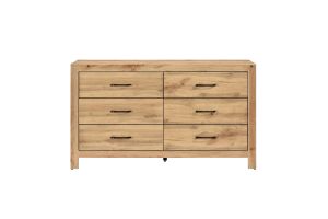 Optimize your bedroom storage with this elegant and space-saving 5-drawer chest, featuring a charming natural finish that brings a rustic touch to any decor. Constructed from a durable blend of faux wood veneer, wood, and engineered wood, this chest is built for longevity. It offers five generously sized drawers, each meticulously crafted with sturdy dovetail construction and smooth metal-on-metal center glides for effortless operation, all accentuated by stylish black nickel-tone bar pulls. Remarkably, this chest arrives fully assembled, ready to enhance your space right out of the box. The surface is also treated with a melamine laminate, providing exceptional resistance against everyday scratches and stains, ensuring its beauty endures for years. No assembly required.