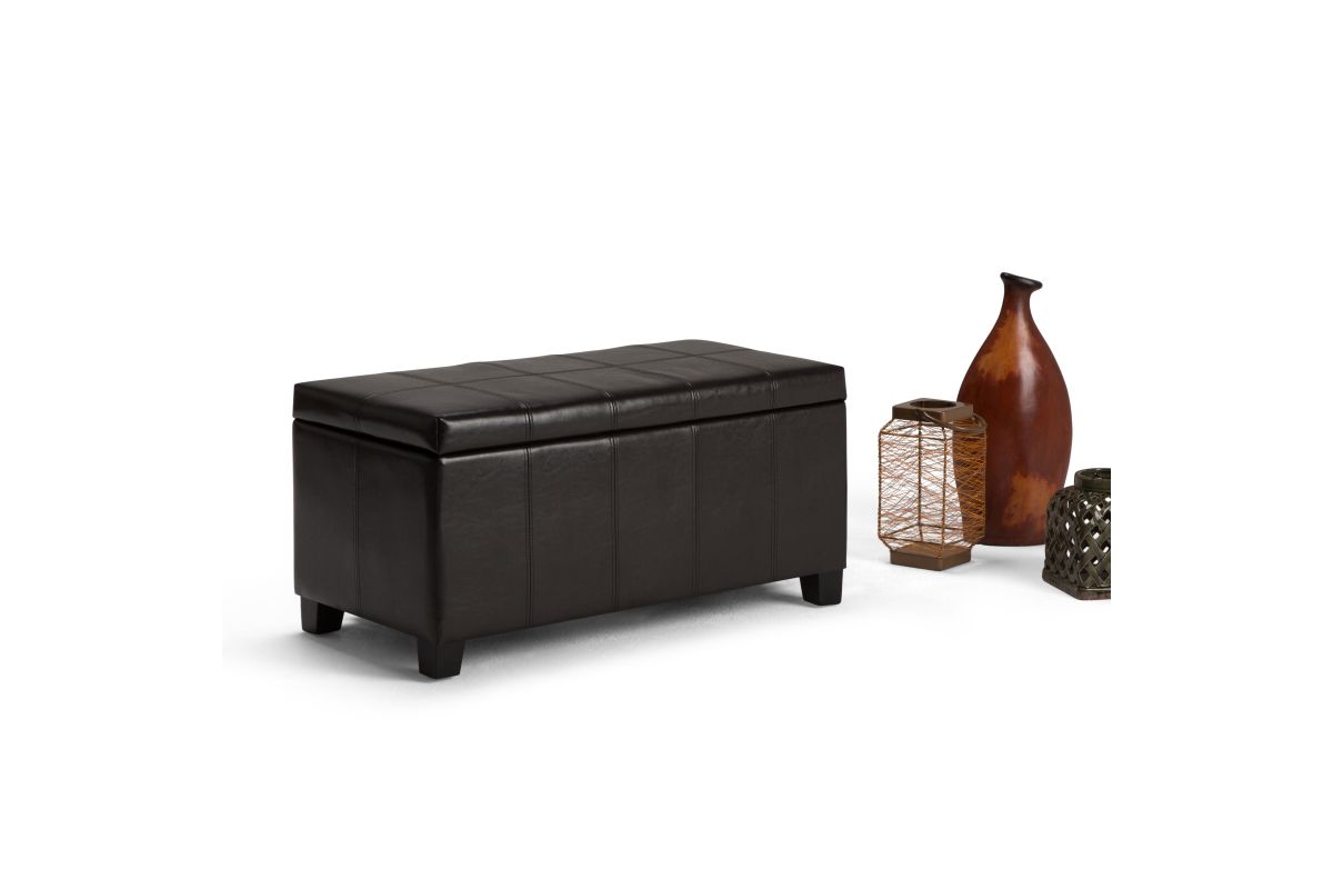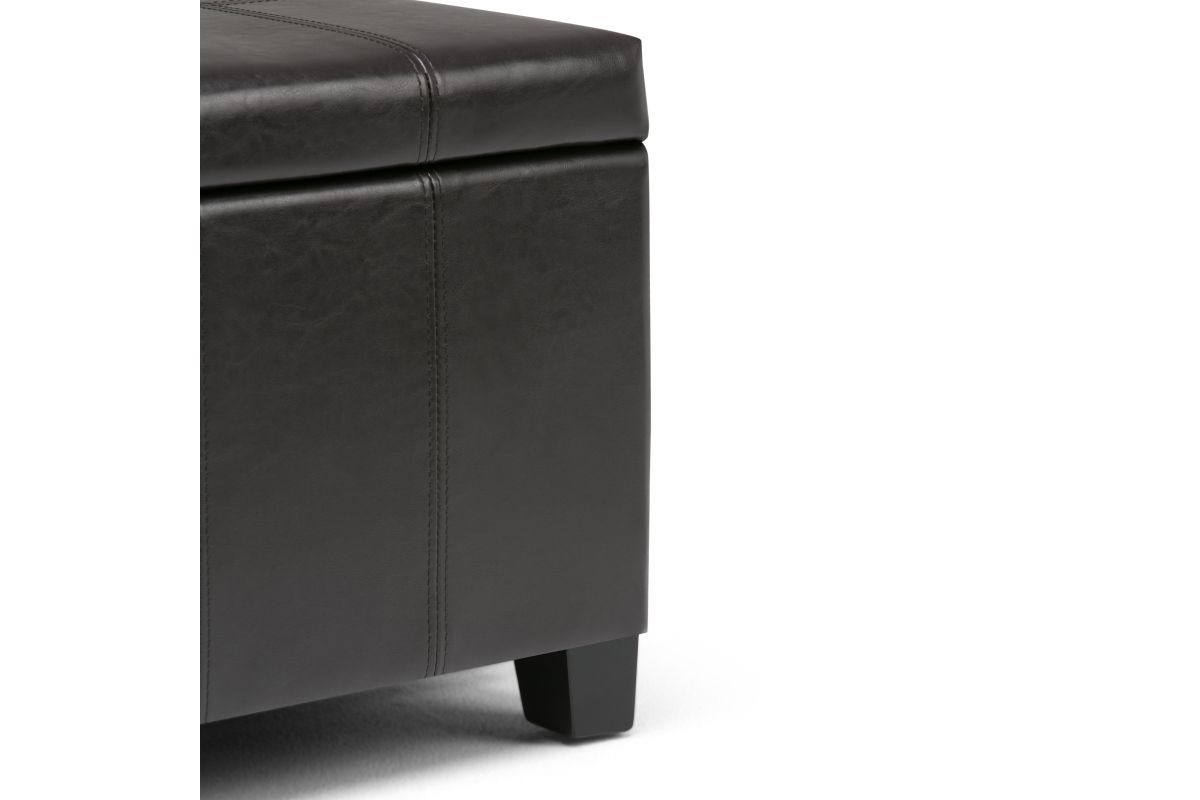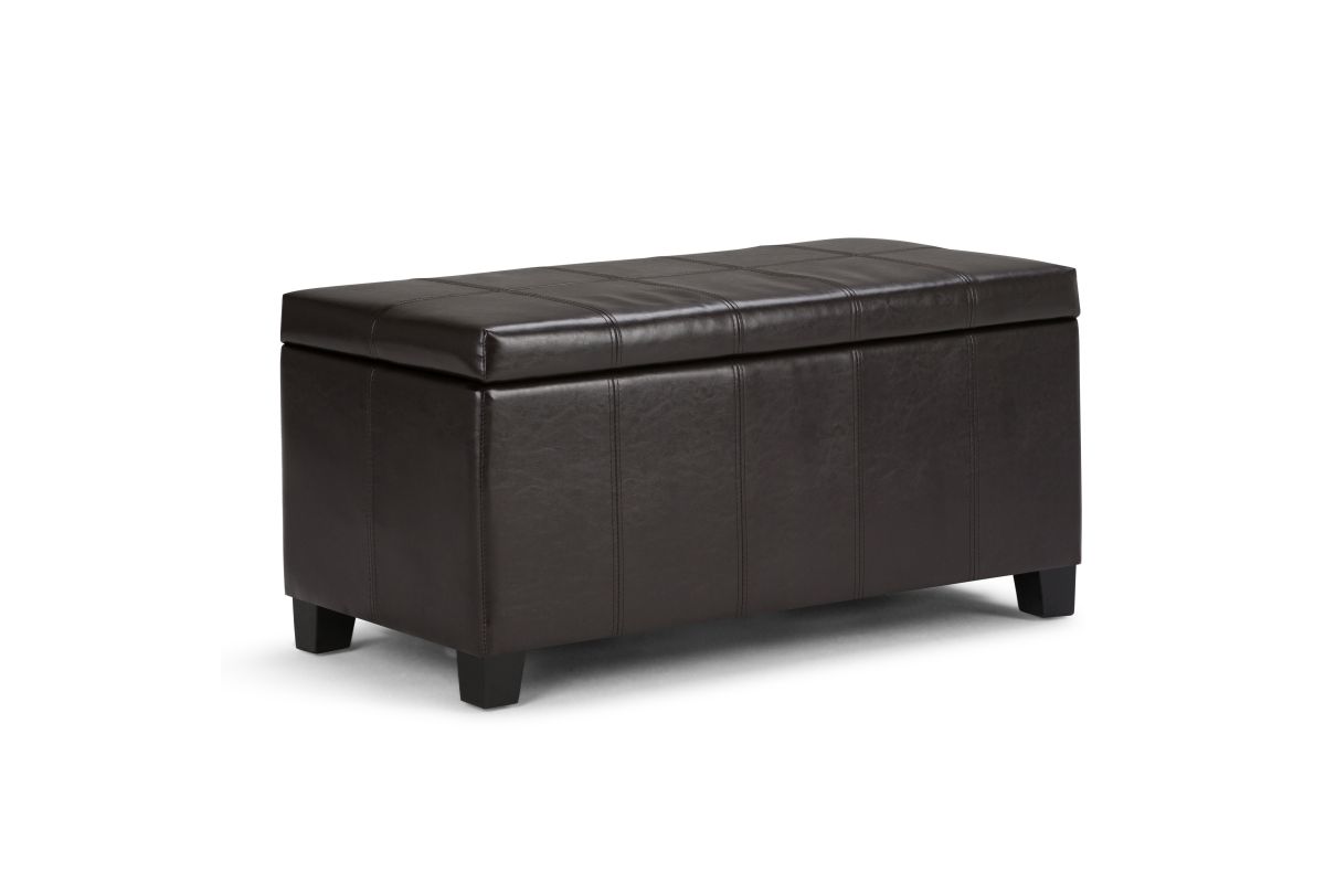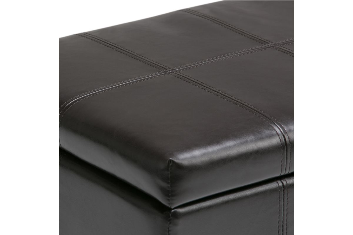 For a stylish solution to your storage needs, the Dover Rectangular Storage Ottoman features a beautiful stitched look with a lift up lid and large interior storage space. The unit is made from durable fabrics and is extra strong and sturdy. Whether you use this ottoman in your entryway, living room, family room, basement or bedroom, it will allow you to hide away all that mess. Assembly required.