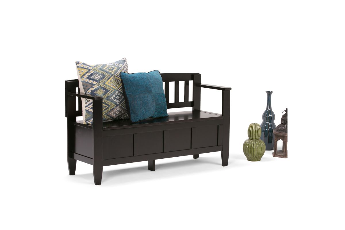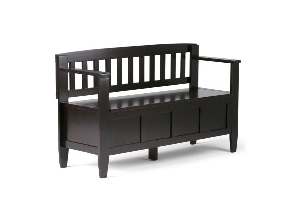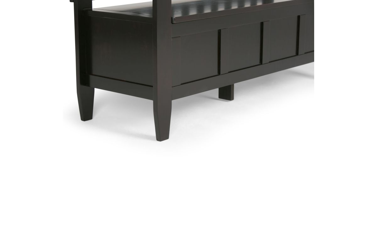 The Brooklyn Entryway Bench hand-crafted using solid wood so that you can make a statement in your front hallway. This stylish bench allows your inner interior designer shine through while creating added storage and seating for your entryway or mudroom. "Form follows function" design rules apply here as the bench features a convenient flip up lid allowing for easy retrieval of articles from the dual storage compartment below. Assembly required.