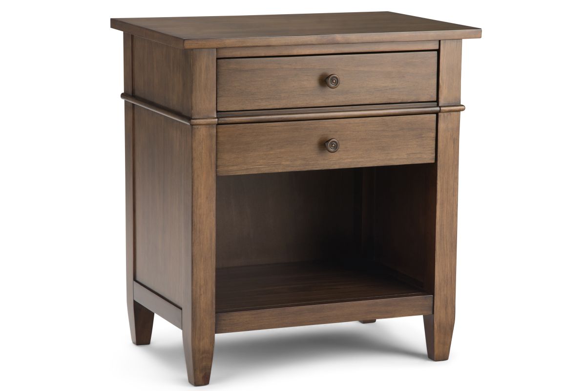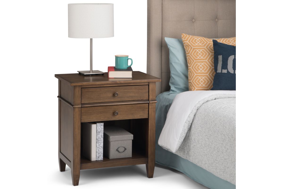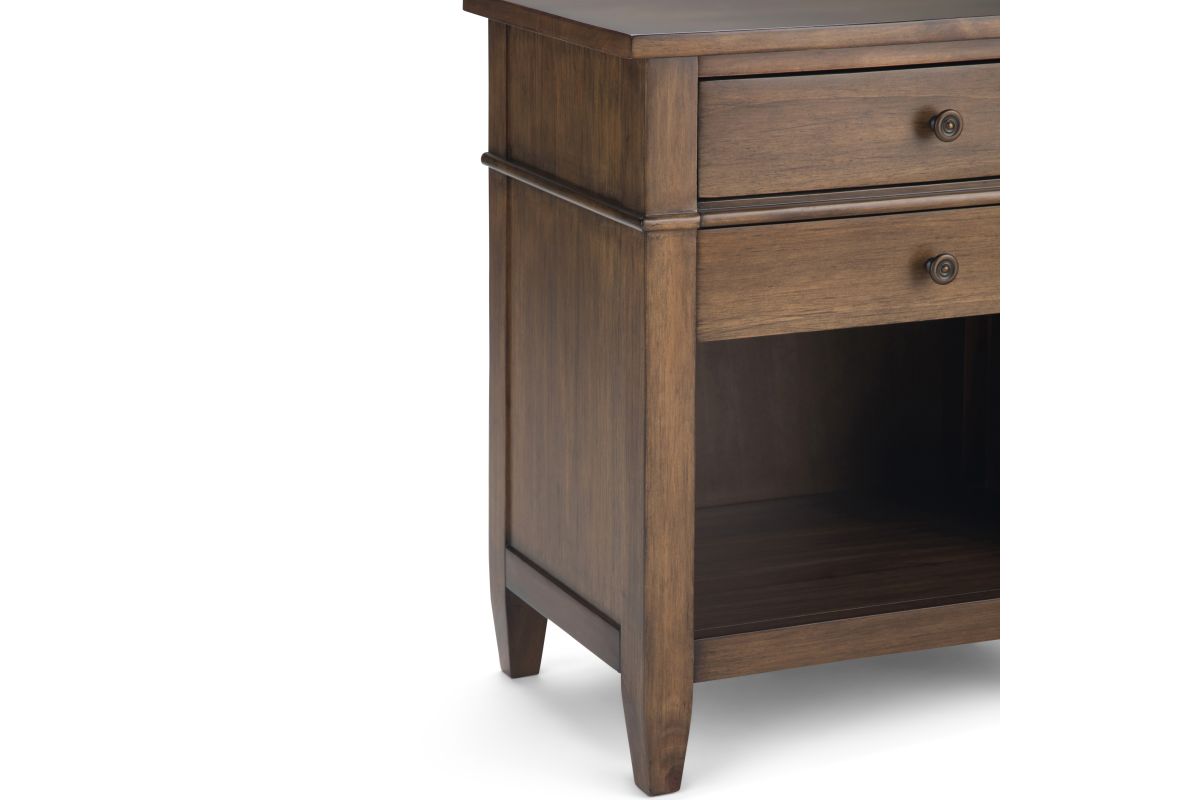 Good things really do come in small packages. Nothing could illustrate this better than the design of our Carlton Bedside End Table which features two drawers and an open storage area. The table is sized perfectly to allow room for a table lamp, book and family photos. This flexible piece can be used as a bedside table, side table, end table or in multiple other settings. Assembly required.