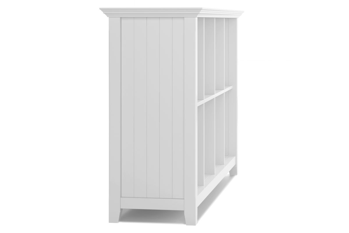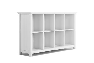 The clutter is sometimes overwhelming; books, CD's, mementos, vases, photos, sculptures, decor pieces... The list is endless. The Acadian 8 Cube Storage / Sofa Table is the ultimate solution for your storage needs. Display your books and decorative accents in dedicated display spaces. With molded top, tapered legs and grooved side panels the design of this piece enhances the appearance of all your items while the fixed shelves offer exceptional structural strength and durability. Assembly required.