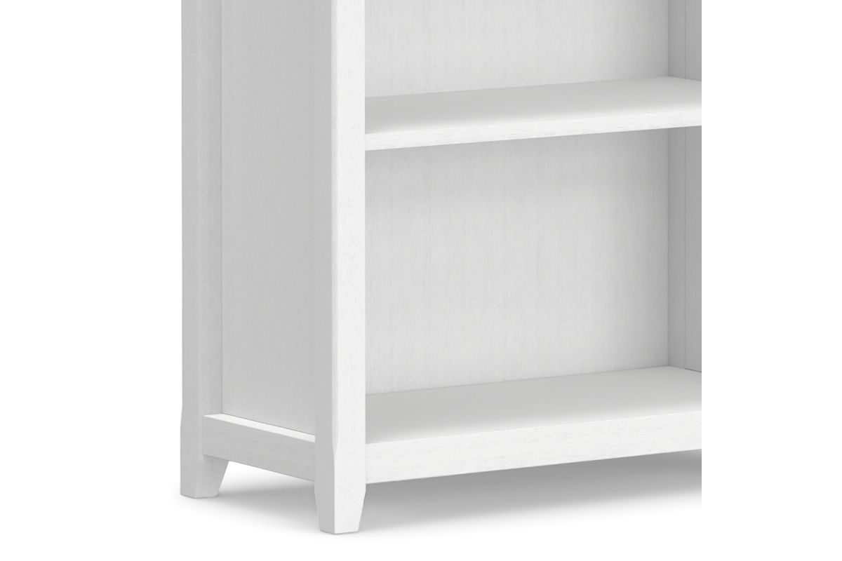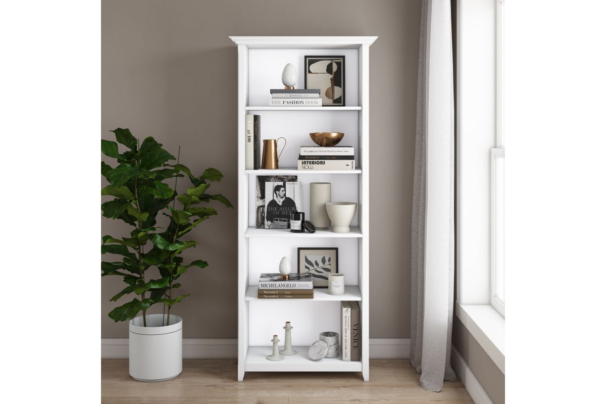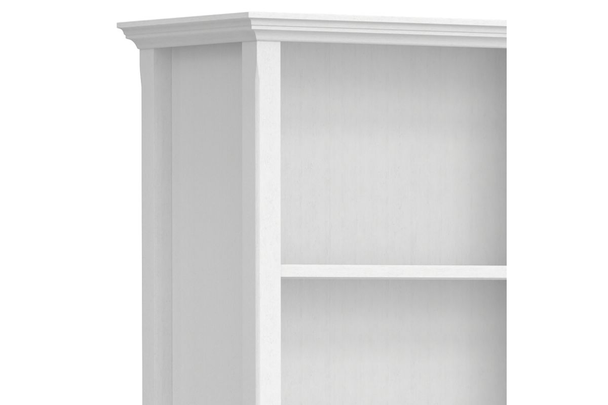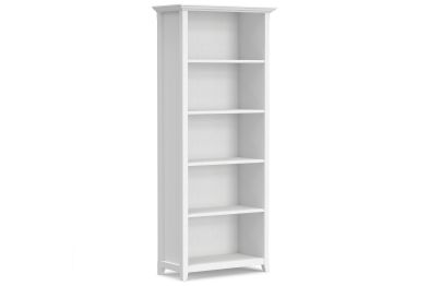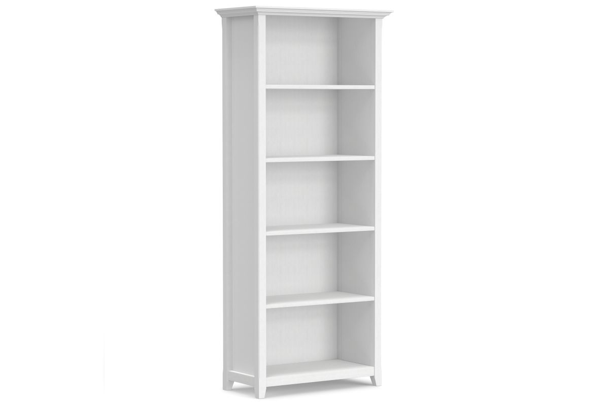 Timeless craftsmanship meets versatile functionality in the Amherst 5 Shelf Bookcase. Handcrafted from solid pine wood, this tall bookshelf features a white finish, accentuating its bright and timeless aesthetic. Five adjustable shelves offer flexible storage, perfect for books, decorative pieces, or home office essentials. The crown molding detail and clean lines draw inspiration from transitional design, making this solid wood bookshelf a refined addition to living rooms, offices, or bedrooms. Built from sustainably sourced pine, kiln-dried to resist warping and cracking, this wooden bookcase delivers long-lasting durability while maintaining an eco-friendly footprint. Assembly required.