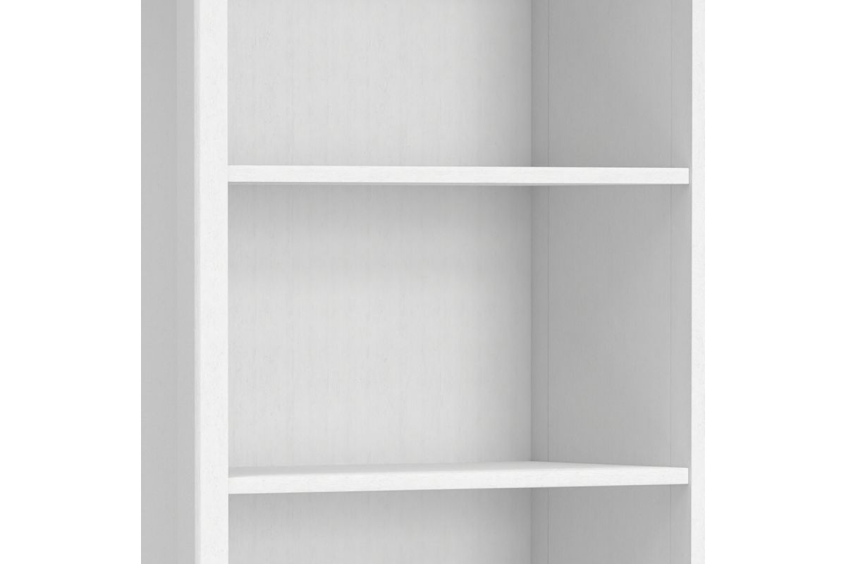 - White Finish: A white finish enhances the natural wood grain adding a minimalist aesthetic to a space; inspired by transitional craftsmanship, this tall bookshelf features a refined silhouette with elegant molding details.