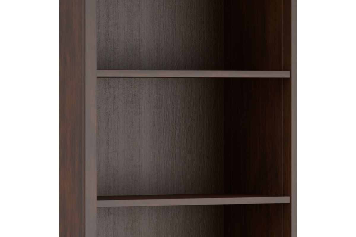 - Russet Brown Finish: A russet brown stain enhances the natural wood grain adding depth to a space; inspired by transitional craftsmanship, this tall bookshelf features a refined silhouette with elegant molding details.