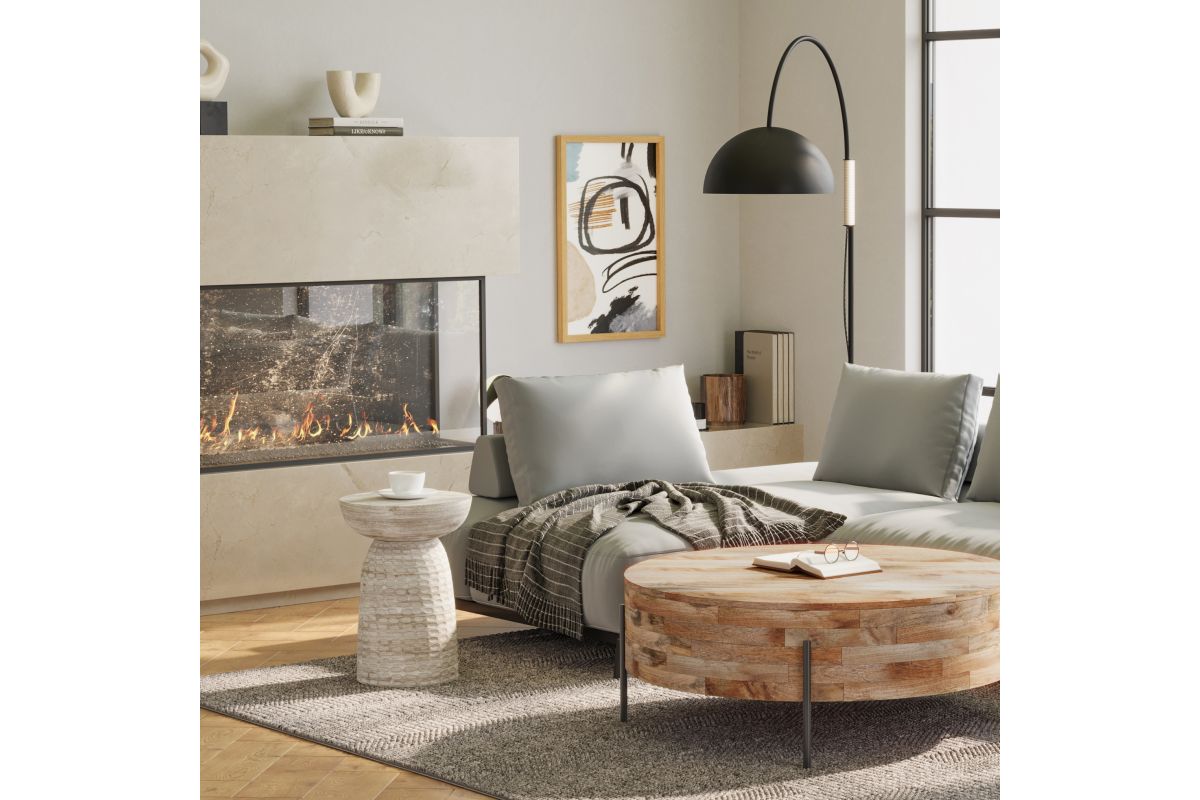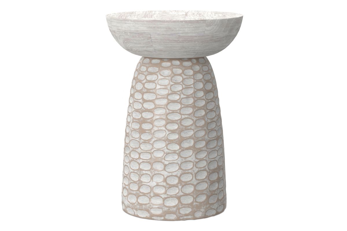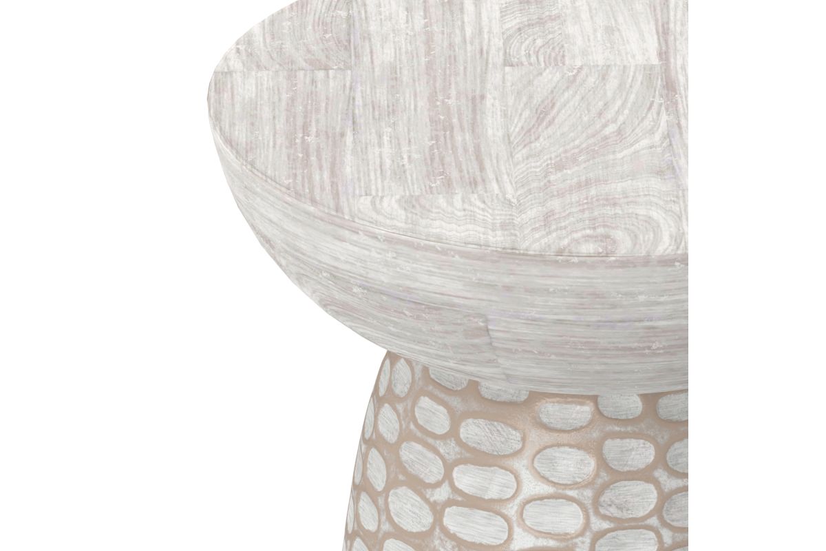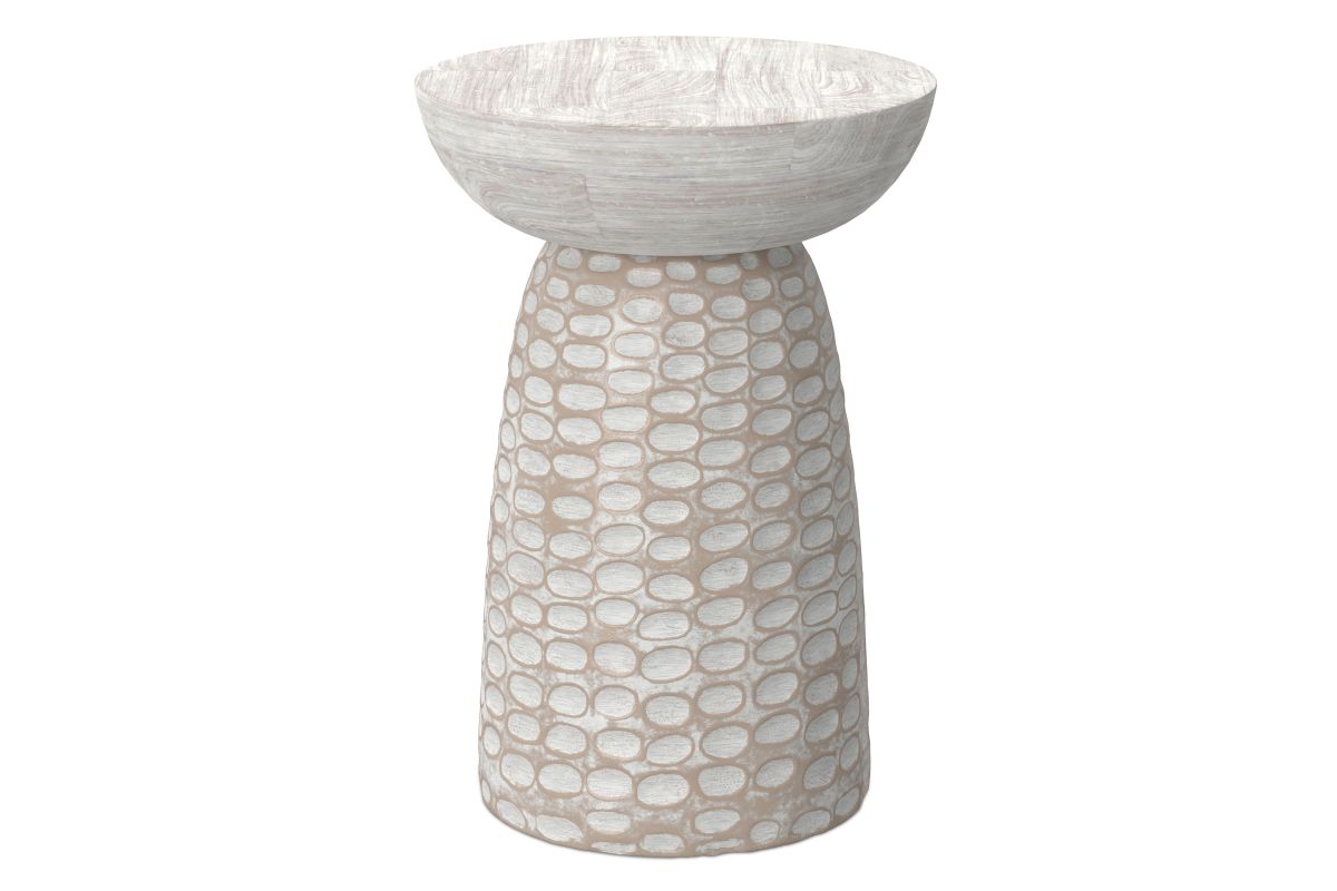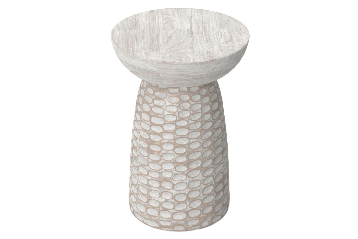 The Boyd Mango Wood Accent Table in White Wash combines the charm of a distressed finish with eco-friendly craftsmanship. Made from kiln-dried mango wood, its white-washed look and hand-carved surface add a touch of rustic elegance to living rooms, family rooms, bedrooms, or basements. This versatile table offers durability and timeless style. No assembly required.