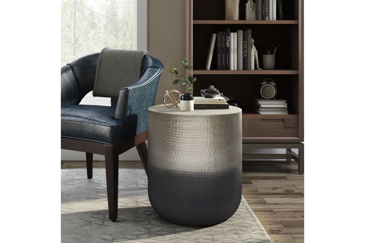 The Nova Large Metal Accent Table provides a great finishing touch to virtually any space. Crafted from iron, the table features a distinctive textured finish. The table has a unique look and can be used as an accent piece in any room. Use it as an end table by a couch or chair or in the bedroom as a side table. No assembly required.
