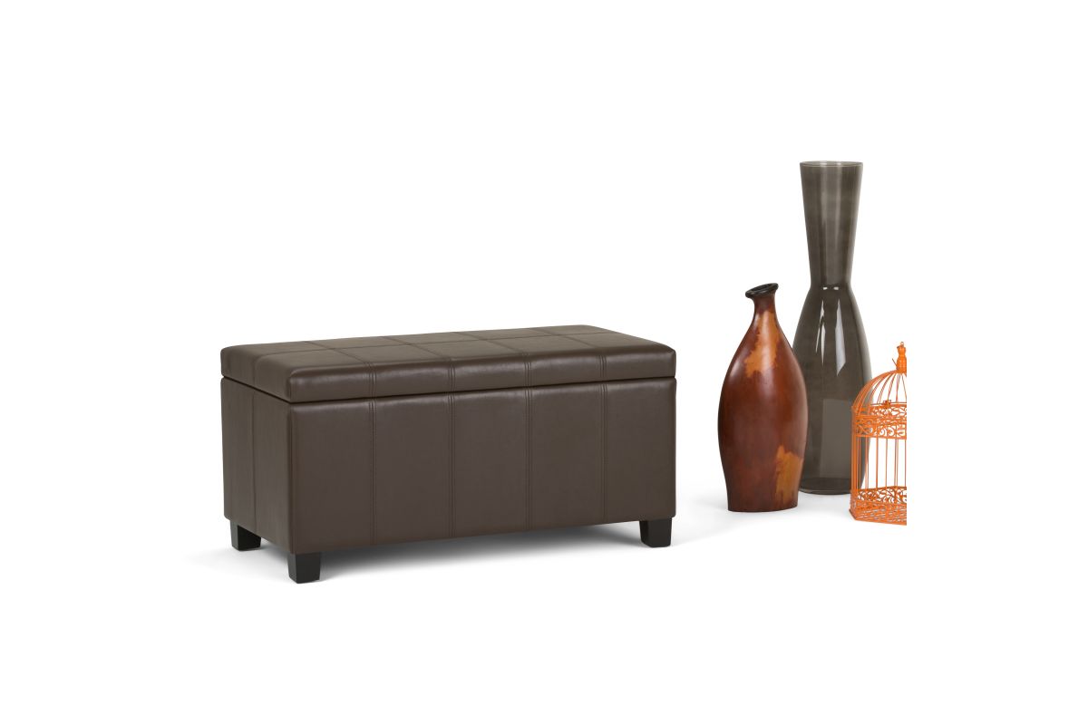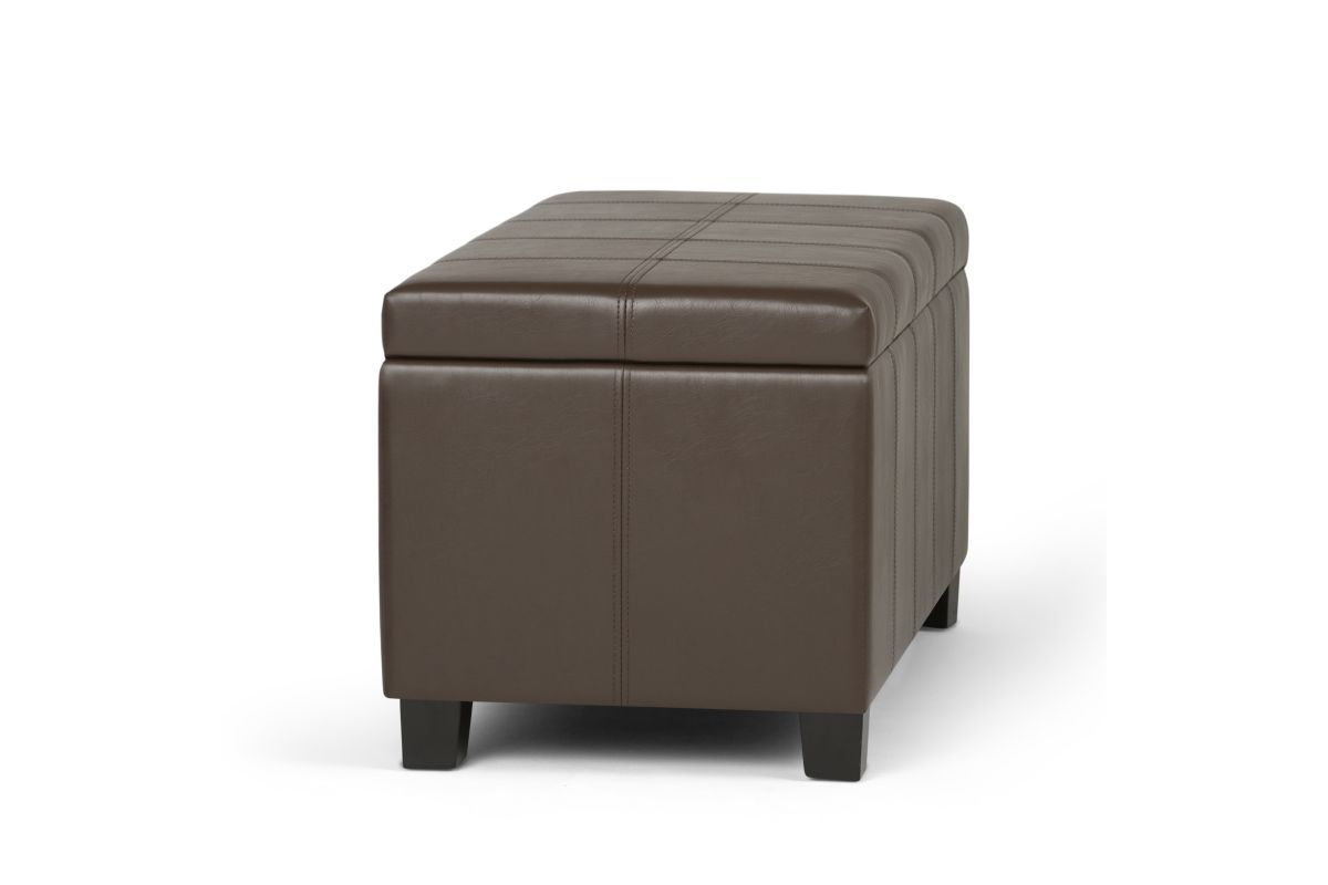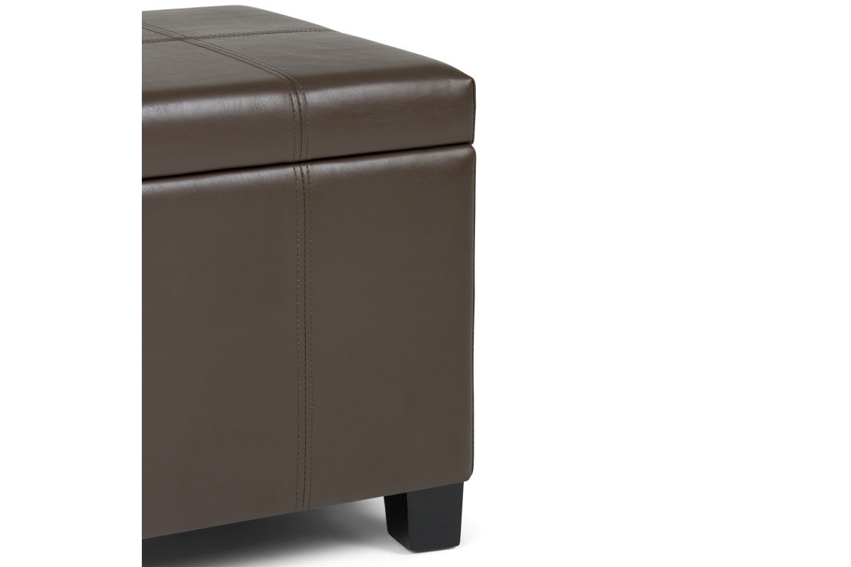 For a stylish solution to your storage needs, the Dover Rectangular Storage Ottoman features a beautiful stitched look with a lift up lid and large interior storage space. The unit is made from durable fabrics and is extra strong and sturdy. Whether you use this ottoman in your entryway, living room, family room, basement or bedroom, it will allow you to hide away all that mess. Assembly required.