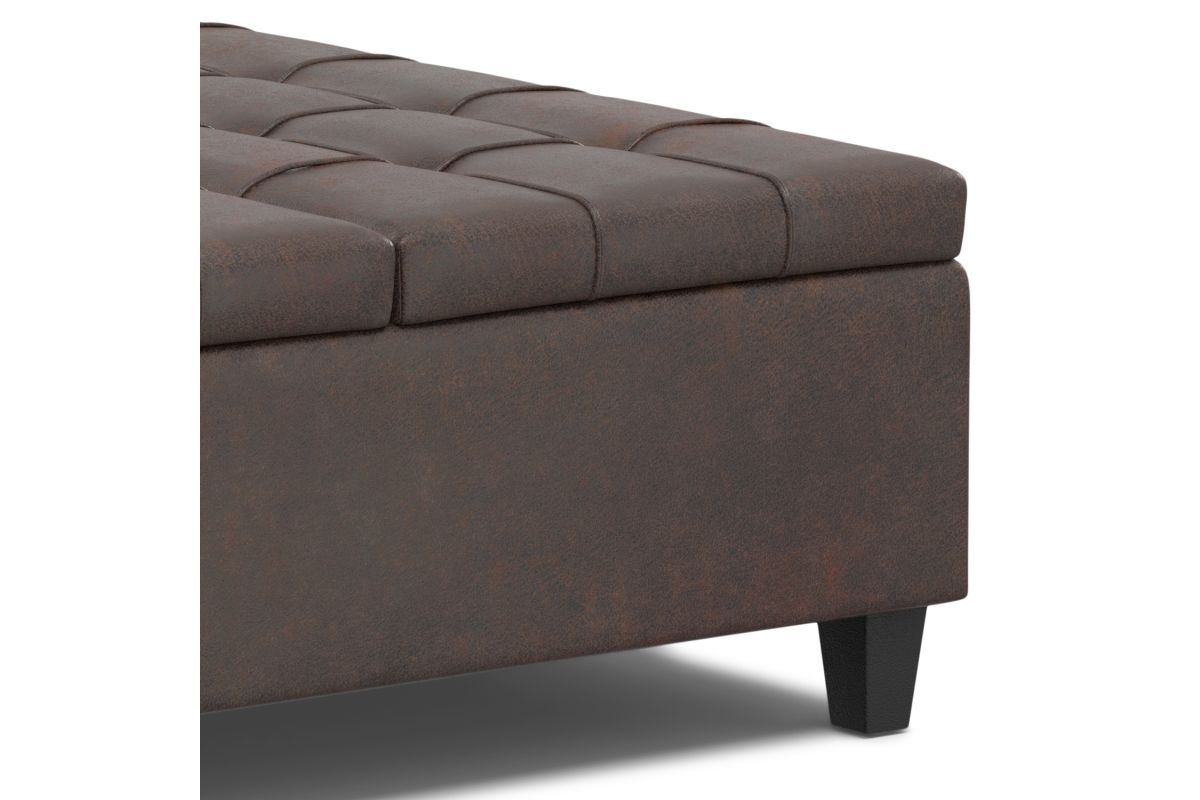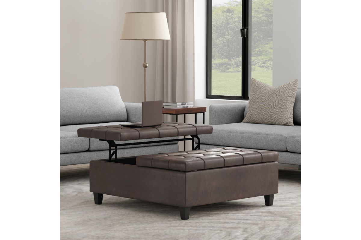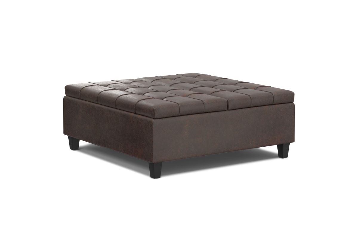 Maximize the space in your living room or family room with the Harrison Large Square Coffee Table Storage Ottoman. The contemporary, yet functional design of the ottoman makes it a necessity for any home. The split top features stylish tufted details and one side lifts up - perfect for a laptop, tablet, or dining. The large interior space is the perfect solution for your storage needs. The Harrison Large Square Coffee Table Storage Ottoman is available in a variety of colors and upholstered options. Assembly required.