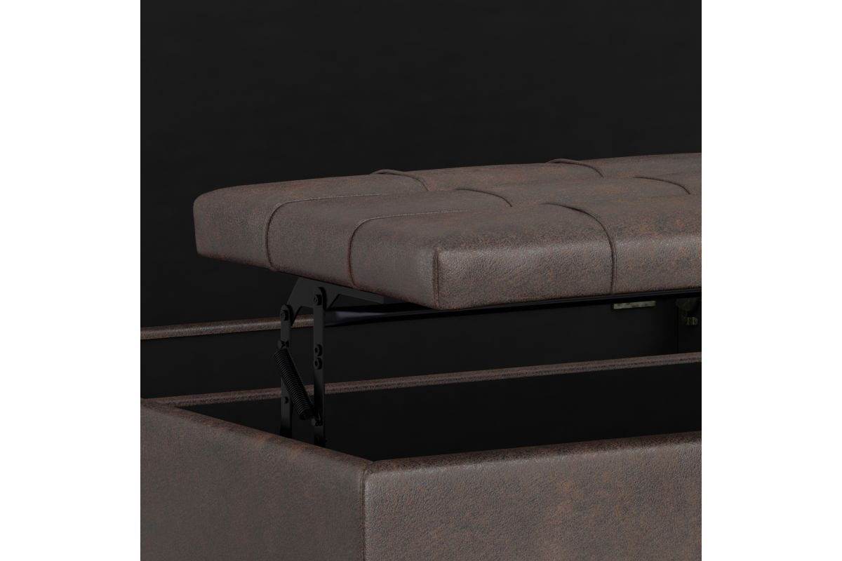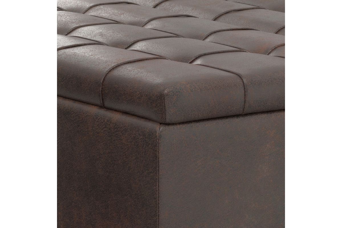 - Upholstered with a durable Distressed Brown Vegan Faux Leather