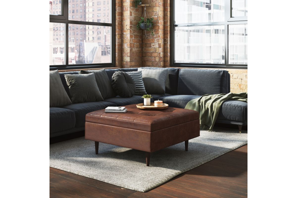 Update your space with the Shay Mid Century Square Coffee Table Storage Ottoman. Its modern style will add a fresh on trend look to your home. It features a hydraulic lift up lid and a large interior storage space. Made with premium fabrics for stylish durability and comfort. Whether used in the living room, family room or den, it will be the showpiece that completes the room. Assembly required.