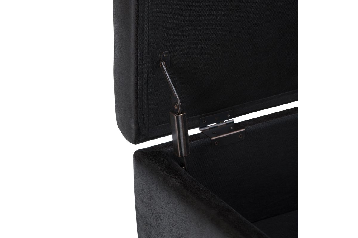 - Upholstered with a durable Distressed Black Vegan Faux Leather
