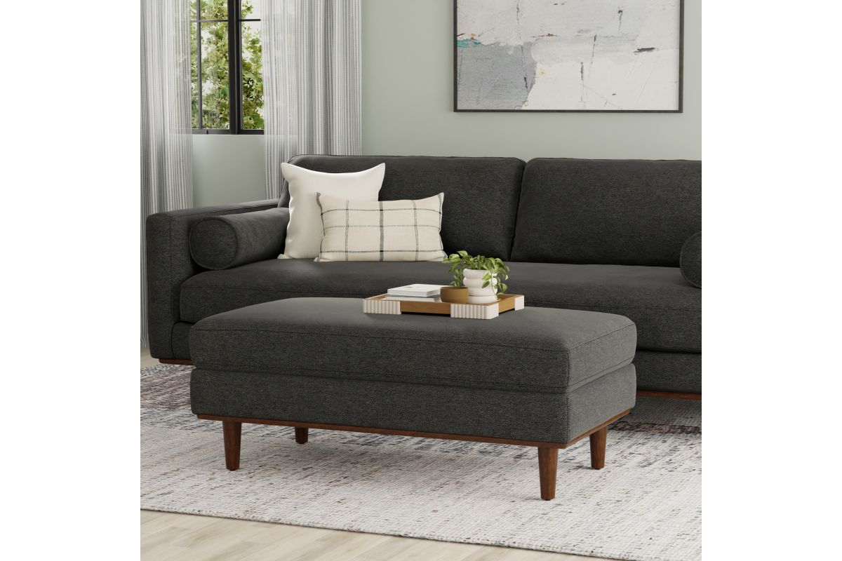 - Dimensions: Large, handcrafted 48.8"W x 25.8"D x 18.5"H ottoman with mid-century modern styling can be used as a footrest and impromptu coffee table, or place it against one of the matching Morrison sofas to convert the couch into a flexible sectional; accommodates up to 300 lbs.