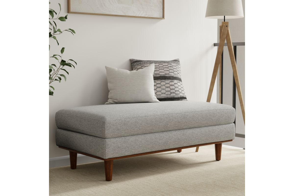 - Dimensions: Large, handcrafted 48.8"W x 25.8"D x 18.5"H ottoman with mid-century modern styling can be used as a footrest and impromptu coffee table, or place it against one of the matching Morrison sofas to convert the couch into a flexible sectional; accommodates up to 300 lbs.