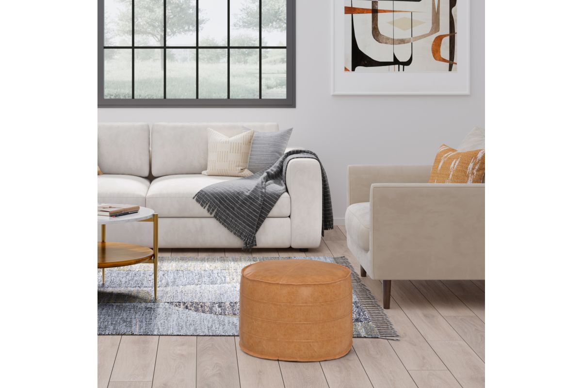 Poufs are trendy, create an updated look in your space with the Brody Square Pouf. Upholstered in a brown distressed look faux leather to create a pouf that's light weight, but durable. Works well as seating for guests or a place to rest feet at the end of the day. No assembly required.