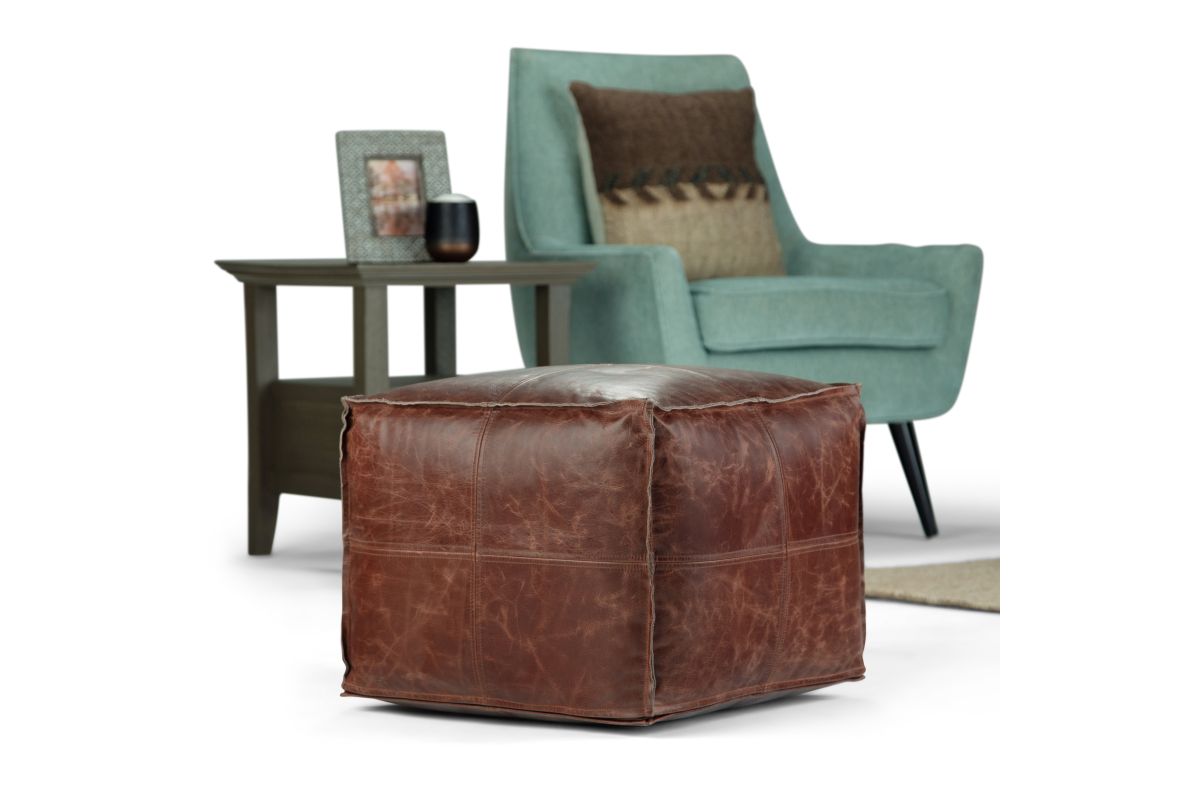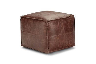 Make a tasteful addition to your home décor with the Sheffield Square Pouf. The pouf is upholstered in a distressed look aniline-dyed genuine buffalo leather that wears and softens over time. Can be used as an ottoman or extra seating. This versatile pouf is sure to enhance the style of your space. No assembly required.