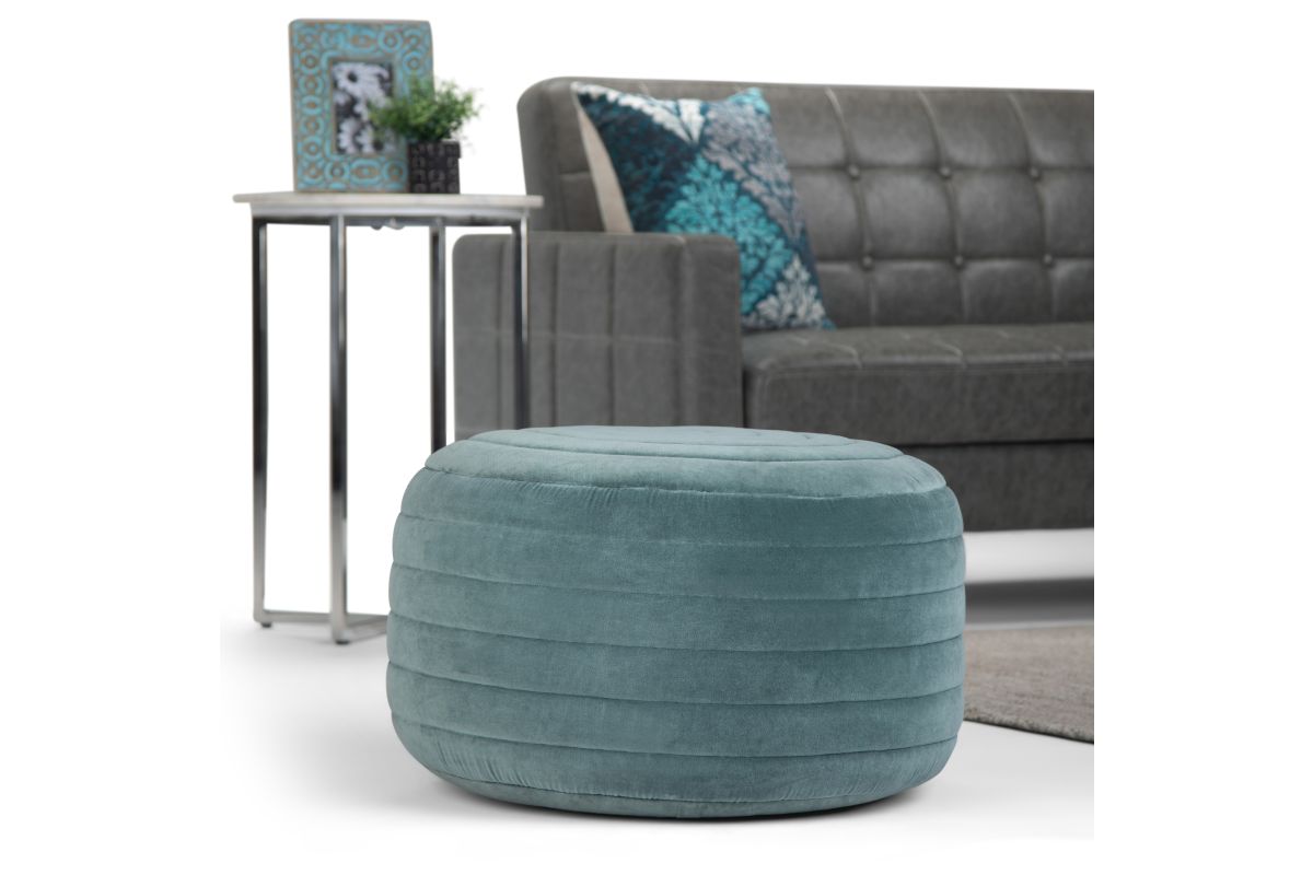 Upholstered in velvet, Vivienne Round Pouf is soft to the touch and comfortable to sit on. Its detailed design and beautiful color adds elegant style to any décor. Beautiful and functional this pouf can be used as an ottoman, an accent piece or casual seating. No assembly required.