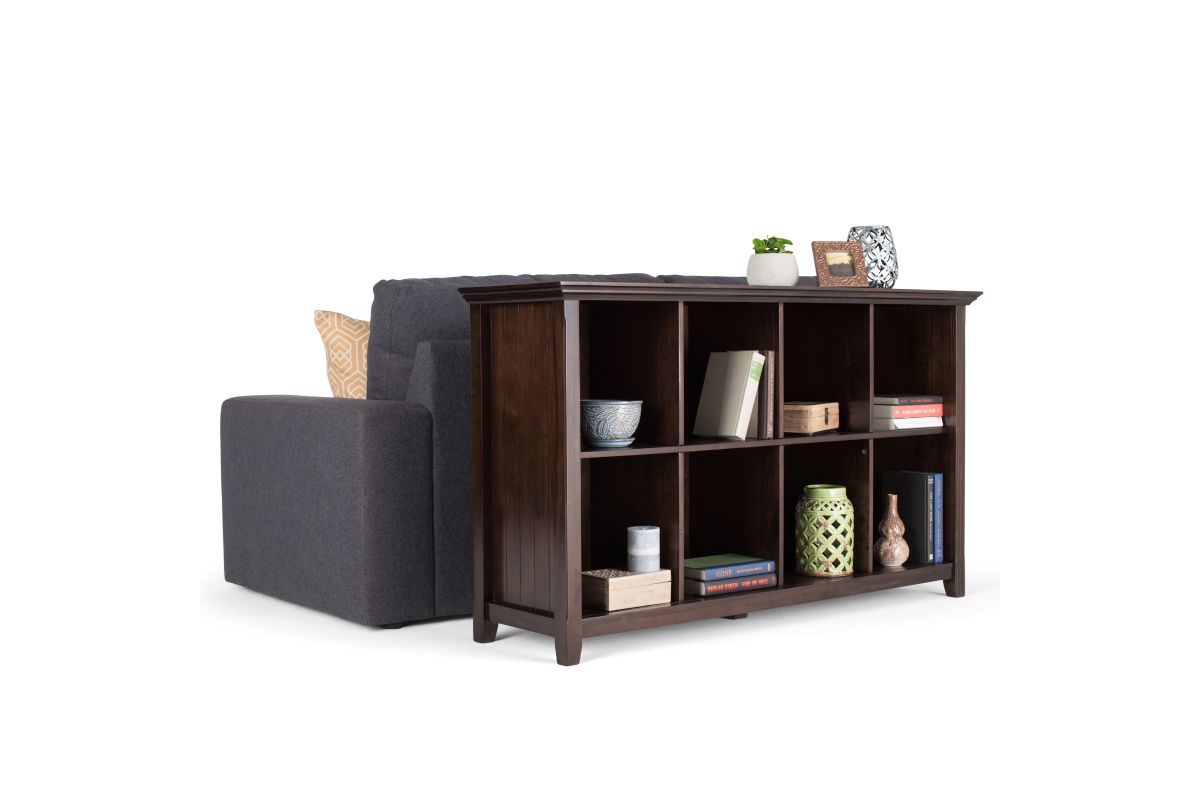 The clutter is sometimes overwhelming; books, CD's, mementos, vases, photos, sculptures, decor pieces... The list is endless. The Acadian 8 Cube Storage / Sofa Table is the ultimate solution for your storage needs. Display your books and decorative accents in dedicated display spaces. With molded top, tapered legs and grooved side panels the design of this piece enhances the appearance of all your items while the fixed shelves offer exceptional structural strength and durability. Assembly required.