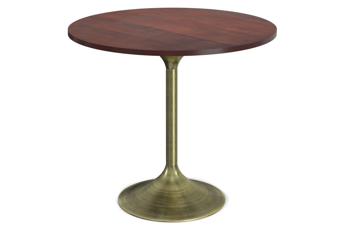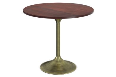 - The circular tabletop is made with sustainably sourced solid mango wood in a rich Walnut finish.