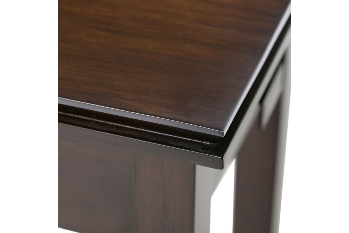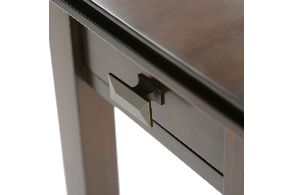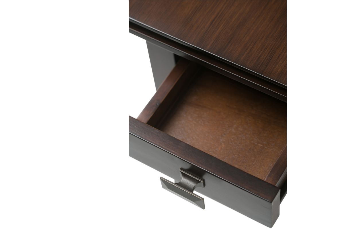 - Features one (1) functional drawer with rectangular antique bronze handles and sturdy ball-bearing metal drawer glides for smooth drawer movement